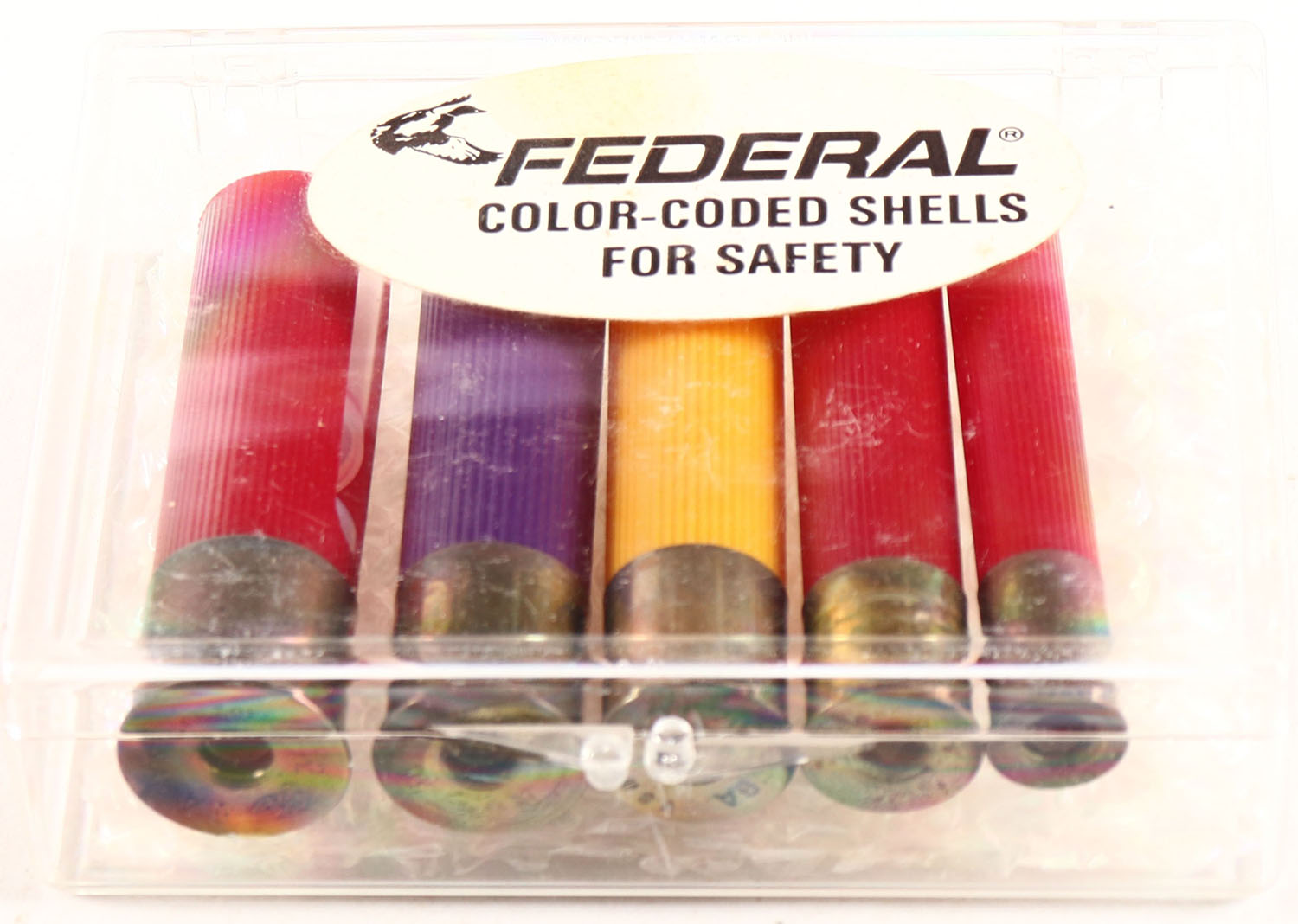 Federal, Shotshell color coded Kit, 12/16/20/28/410ga., 1pc., Full, clear case, shells are excellent. Grade: MINT - Value: 10 to 40