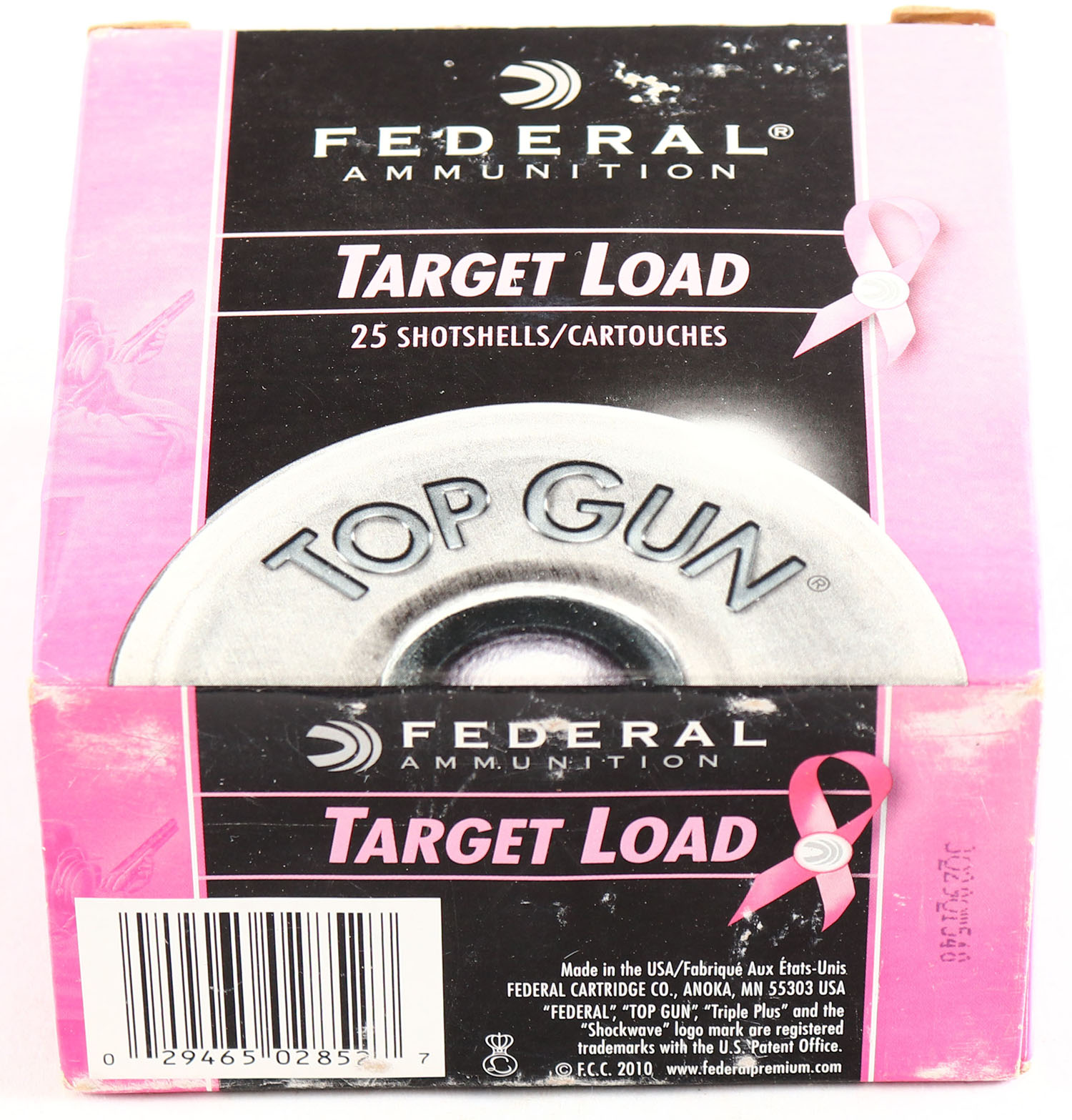 Federal, Target Load, Pink Ribbon Box, 12ga., 2 3/4'', 1pc., Full, shot size 8, multi-colored box, box is solid, shells are excellent. Grade: Excellent ++ - Value: 10 to 40