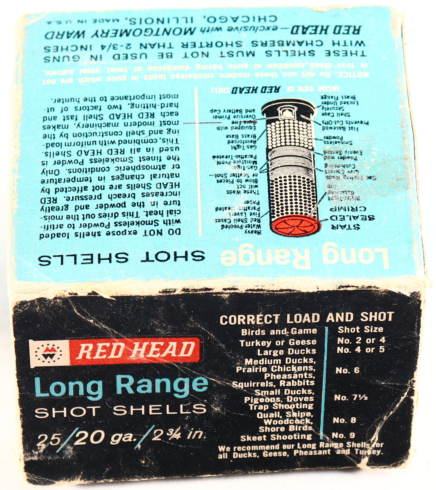Wards Hawthorne, Long Range Shot Shells, 20 ga., 2 3/4'', 1pc., Full, shot size 6, box is solid with nice colors, shells are very good. Grade: Very Good ++ - Value: 10 to 30