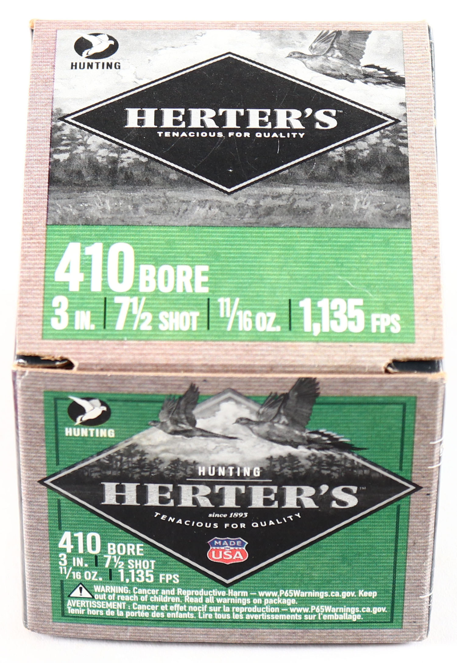 Herter's, 410 BORE, 1pc., shot size 7 1/2, multi-colored box, box is very solid, shells are minty. Grade: MINT - Value: 20 to 60