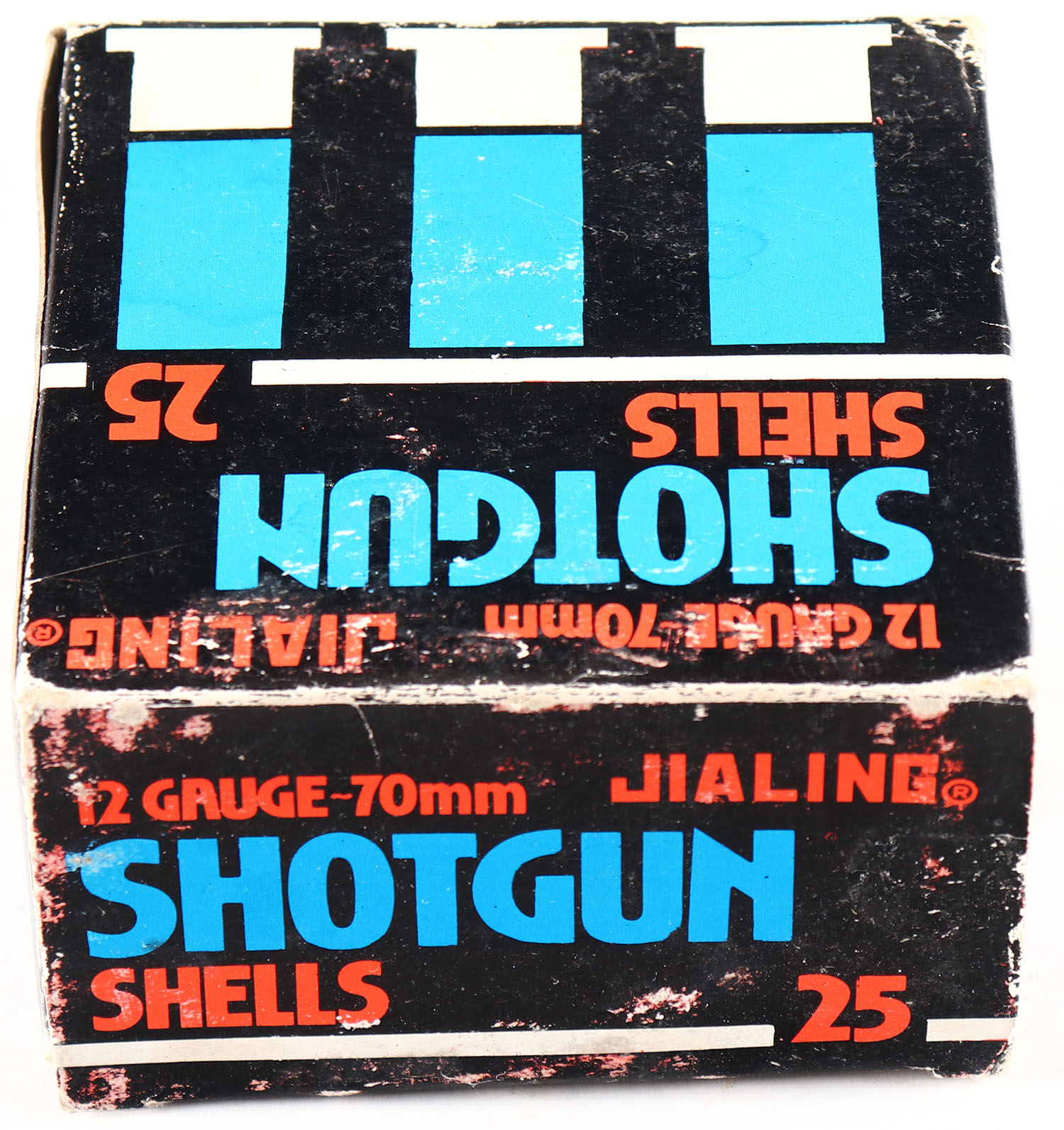 JIALING, 12ga., 24g, 2.40mm, Full, multi-colored box, box is solid with very nice colors, shells are excellent. Grade: Very Good + - Value: 10 to 20