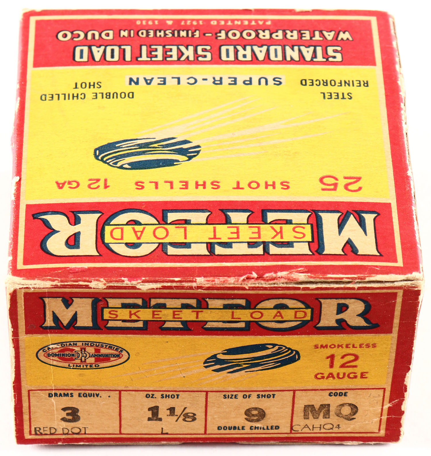 CIL, METEOR, Skeet Load, 12ga., 1pc., Empty, shot size 9CH., buff box with great colors, box is very solid. Grade: Excellent - Value: 40 to 200