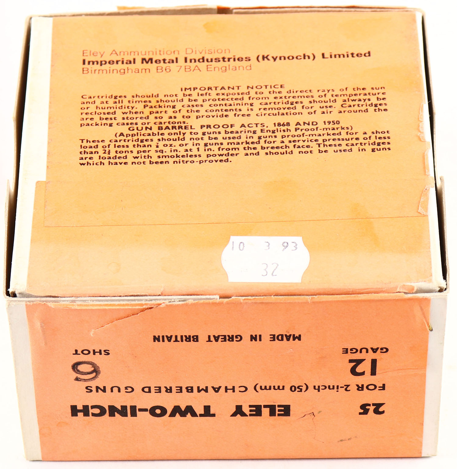 | Eley, 12ga., 2pc., Full, shot size 6, orange & black box, box i...