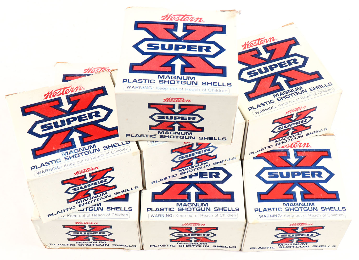 FULL CASE of Winchester, Super X Magnum, 12 ga., 1 pc., Full, shot size 4 Lubaloy, 250rds, multi-colored box, box is very solid, shells are very good. Grade: Excellent - Value: 50 to 300