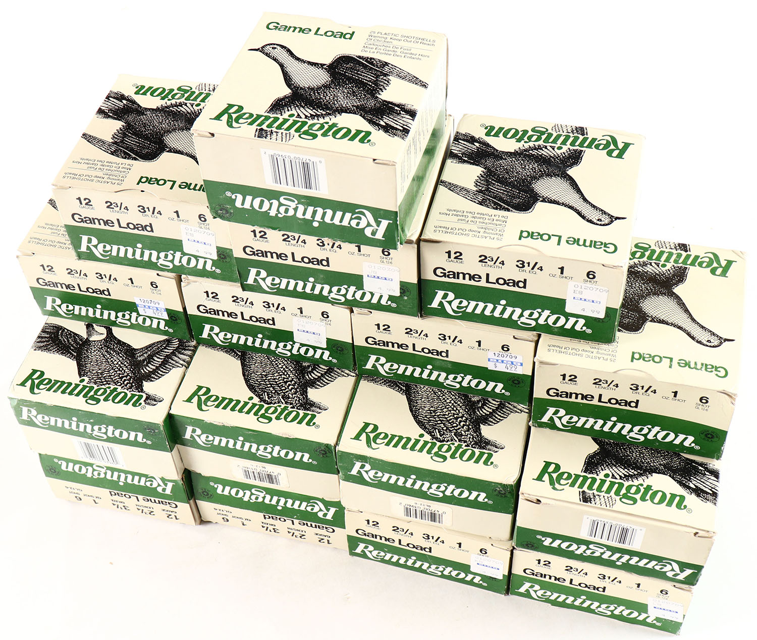Remington, Game Load, 12ga., 1pc., Full case of 24 boxes, 600rds., shot size 6, boxes are very solid. Grade: Excellent + - Value: 50 to 150