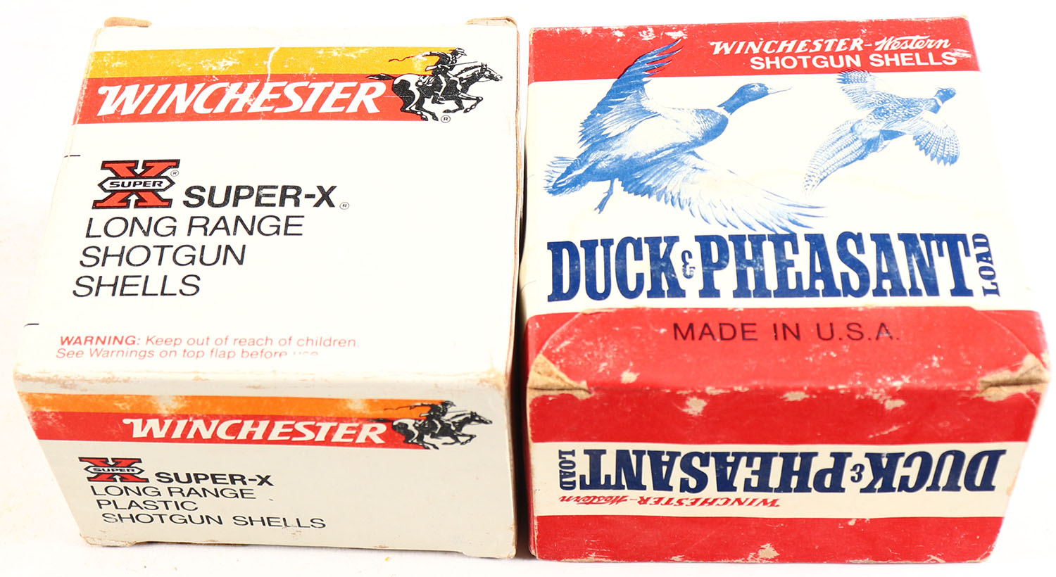 Lot of 2 Winchester, 20ga., 1pc., Appears Full, shot size 6 & 5, multi-colored boxes. Grade: Very Good + - Value: 10 to 30