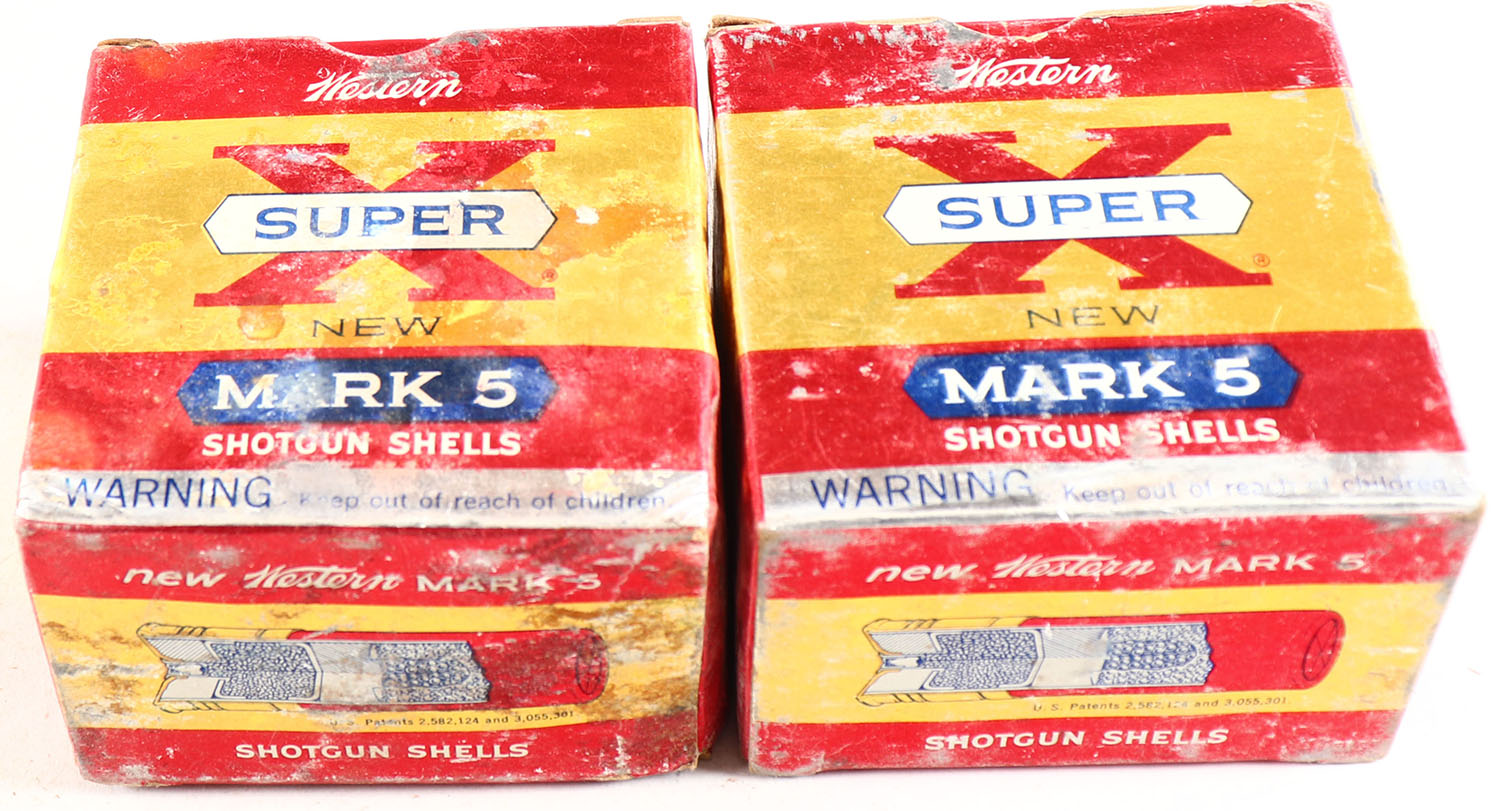 Lot of 2 Winchester, 20ga., 1pc., Appears Full, shot size 6, multi-colored boxes. Grade: Very Good - Value: 10 to 30