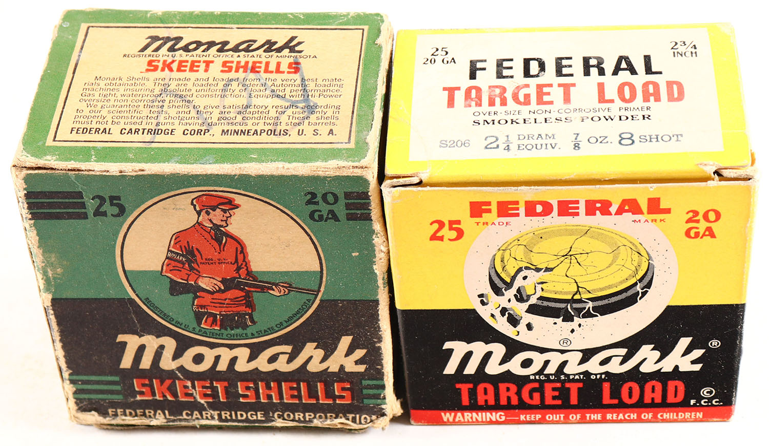 Lot of 2 Federal, 20ga., 1pc., Appears full, shot size 8, multi-colored boxes. Grade: Very Good - Value: 10 to 30