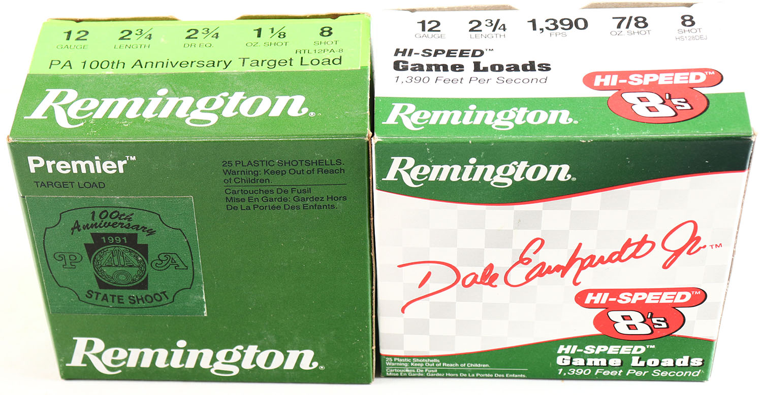 Lot of 2 Remington, 12ga., 1pc., shot size 8, Appears Full, multi-colored boxes. Grade: Excellent - Value: 10 to 30