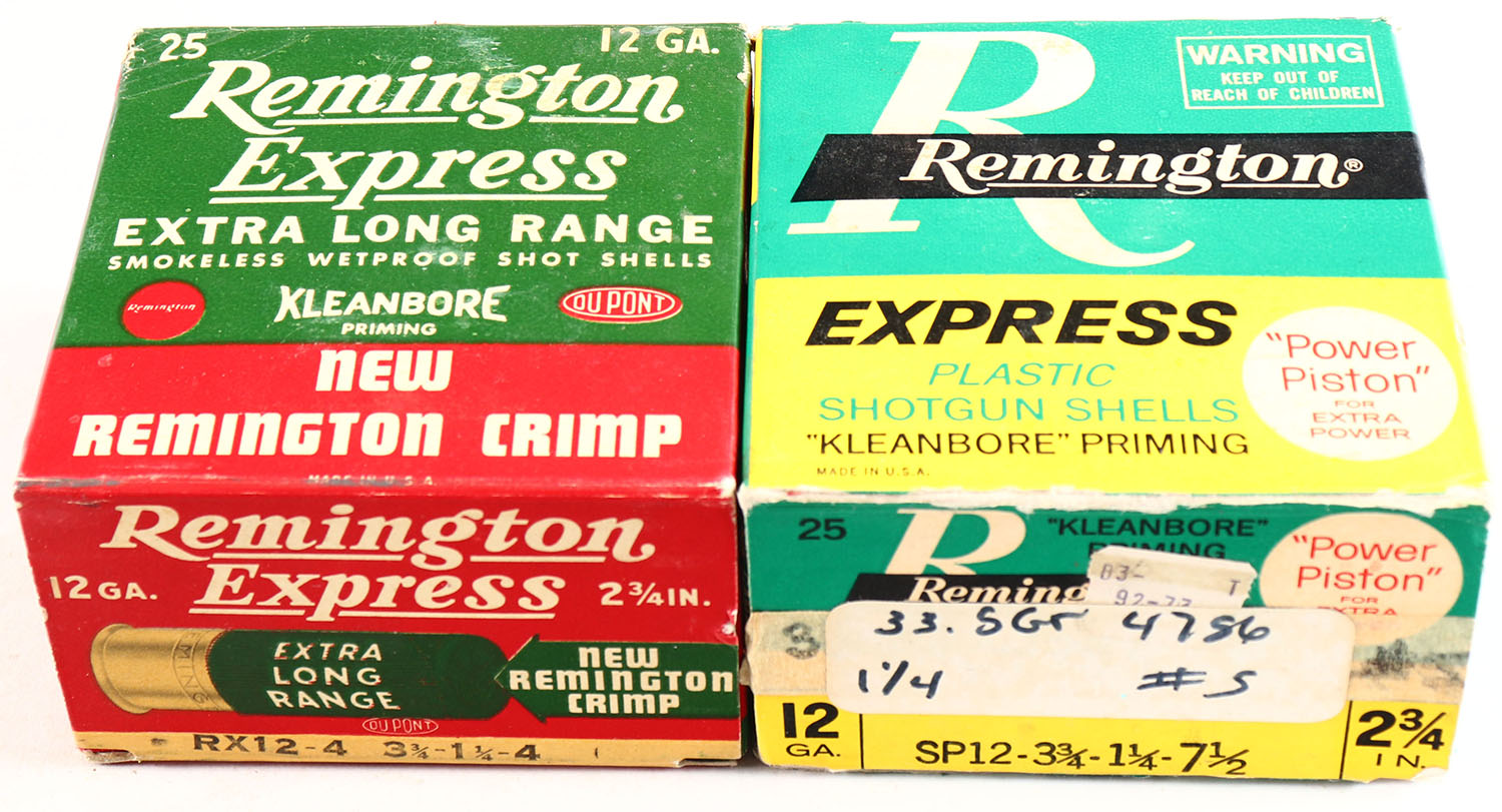 Lot of 2 Remington, 12ga., 1pc., shot size 4 & 7 1/2, Appears Full, multi-colored boxes. Grade: Very Good - Value: 10 to 30
