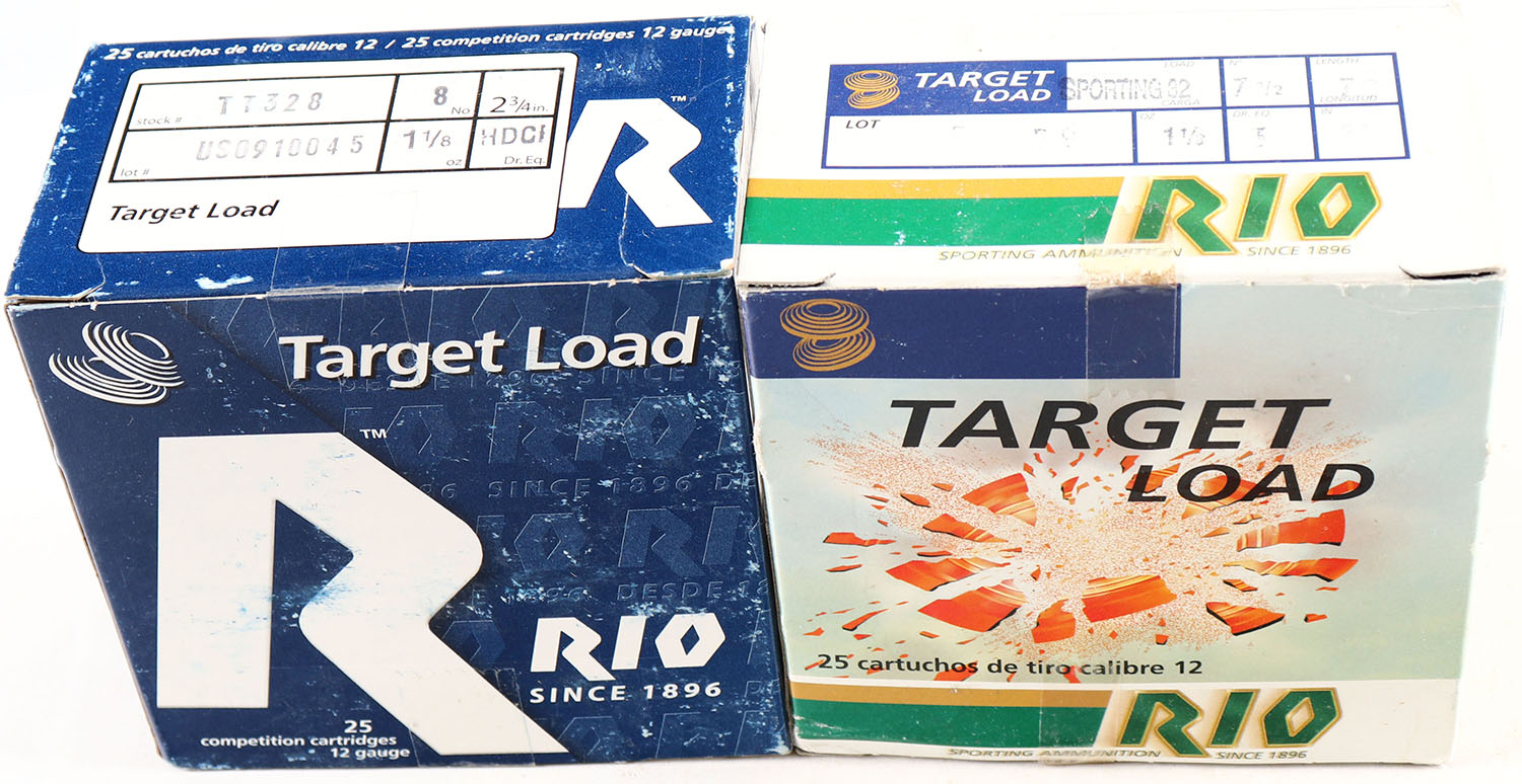 Lot of 2 RIO, 12ga., 1pc., Appears Full, shot size 8 & 7 1/2, multi-colored boxes. Grade: Very Good + - Value: 10 to 30