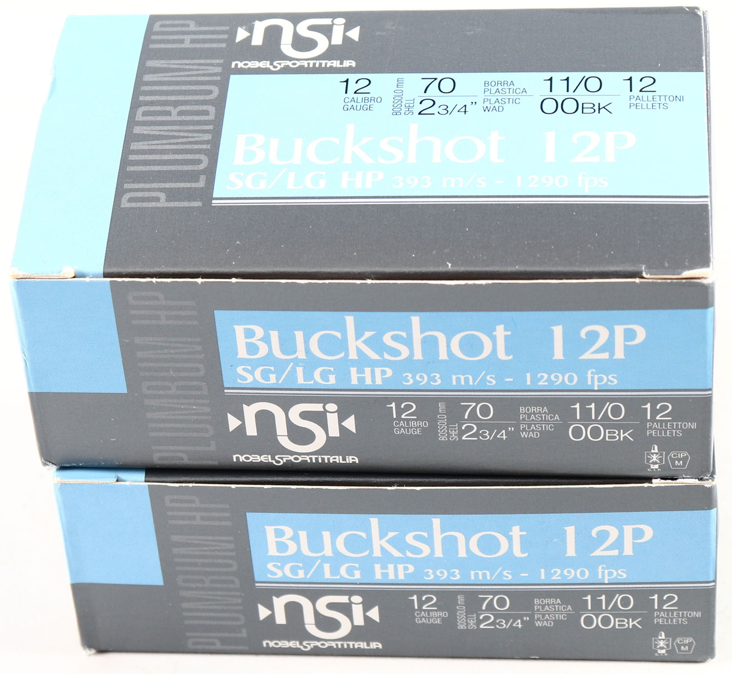 Lot of 2 NSI, 12ga., 1pc., Appears Full, shot size buckshot, multi-colored box. Grade: MINT - Value: 10 to 30