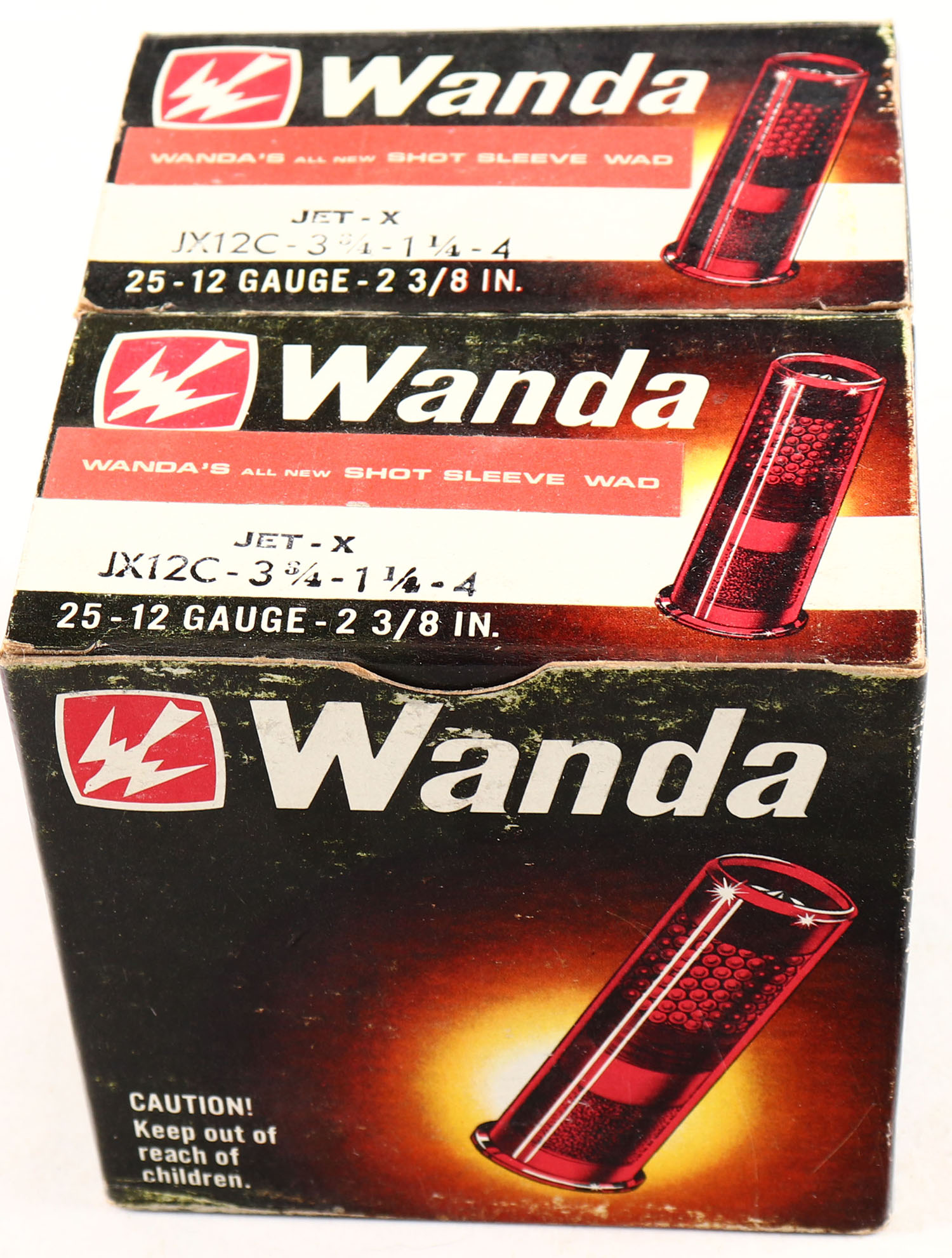 Lot of 2 Wanda, 12ga., 1pc., Appears Full, shot size 4, multi-colored boxes. Grade: Very Good ++ - Value: 10 to 30