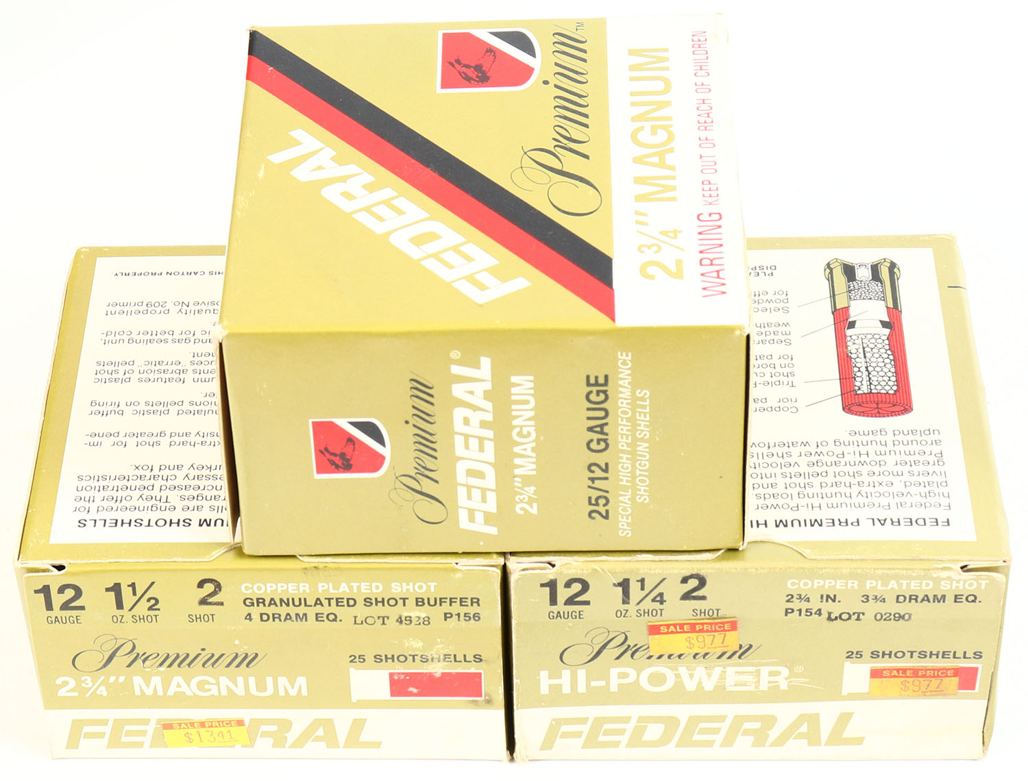 Lot of 3, Federal, 12ga., Appears Full, Shot size 2, Shotshell Boxes. Grade: Very Good ++ - Value: 10 to 60