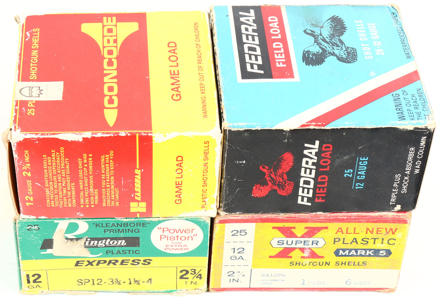 Lot of 4, Mixed Manufacture, 12ga., Appears Full, Shotshell Boxes. Grade: Very Good ++ - Value: 10 to 60