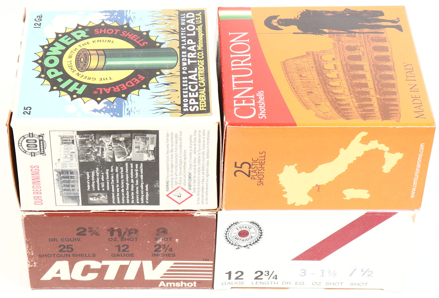 Lot of 4, Mixed Manufacture, 12ga., Appears Full, Shotshell Boxes. Grade: Very Good ++ - Value: 10 to 60