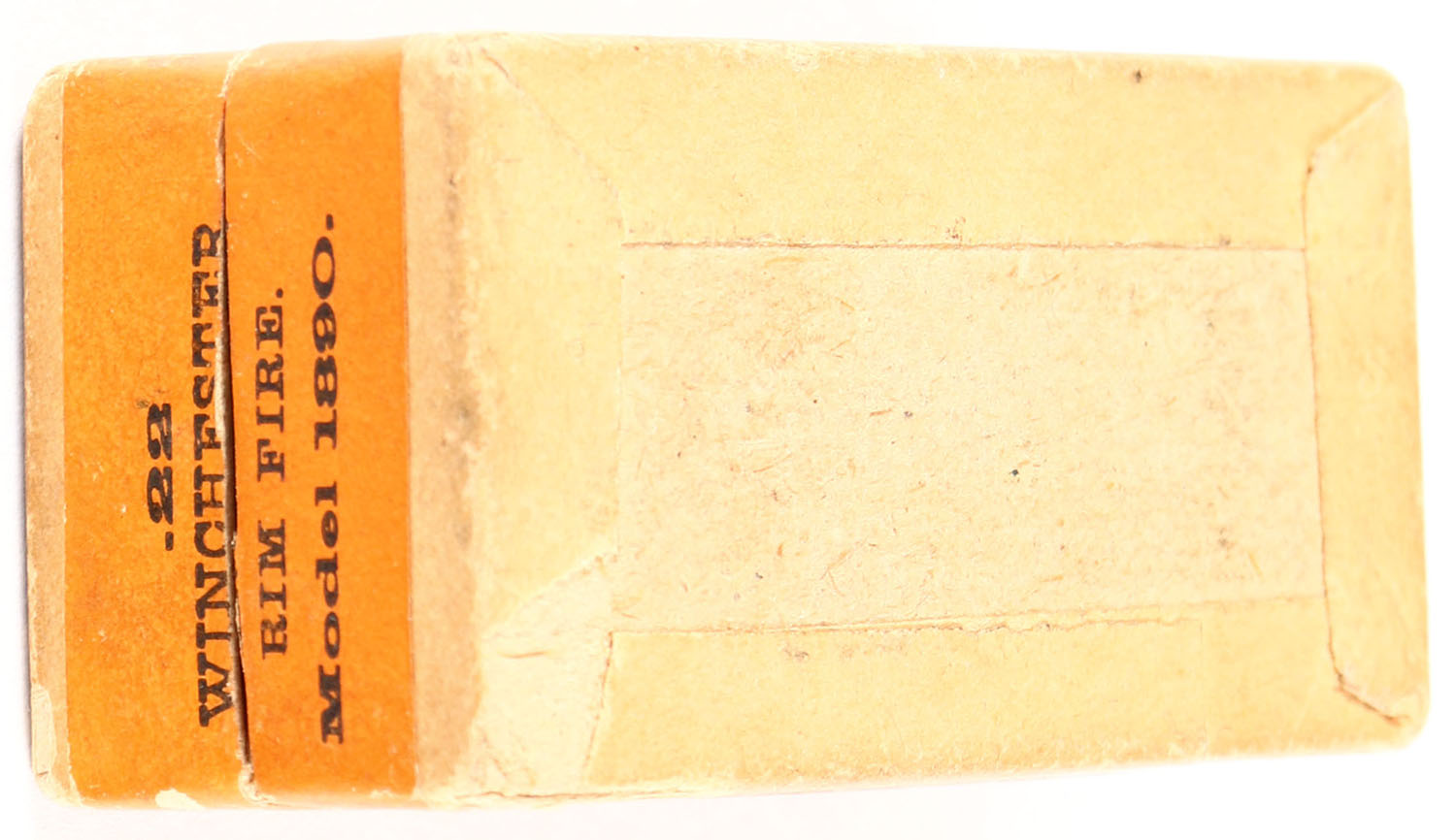 Winchester, Cartridges, .22 Winchester Rim Fire, RR: WRA-149 WRF-3a, Full, 2pc. Buff box with green top & orange side sealing labels, box is solid with very good color, minor age soiling & color fading, minor shelf & edge wear, some corner wear, labels are intact, ammo is excellent. Grade: Very Good ++ - Value: 100 to 400