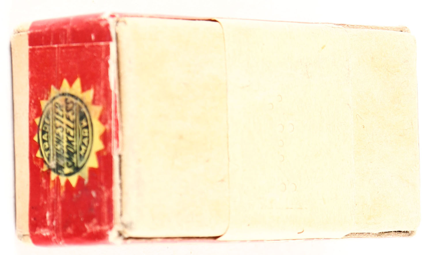 Winchester, Smokeless Rifle Cartridges, .22 Long, RR: WRA-65 L-24e, FULL & SEALED, 2pc. Buff box with green top & red side sealing labels, box is solid with excellent color, minor shelf wear, small corner ding on top front corner, corners are otherwise sharp, edges are crisp, labels are intact. Grade: Excellent - Value: 40 to 200