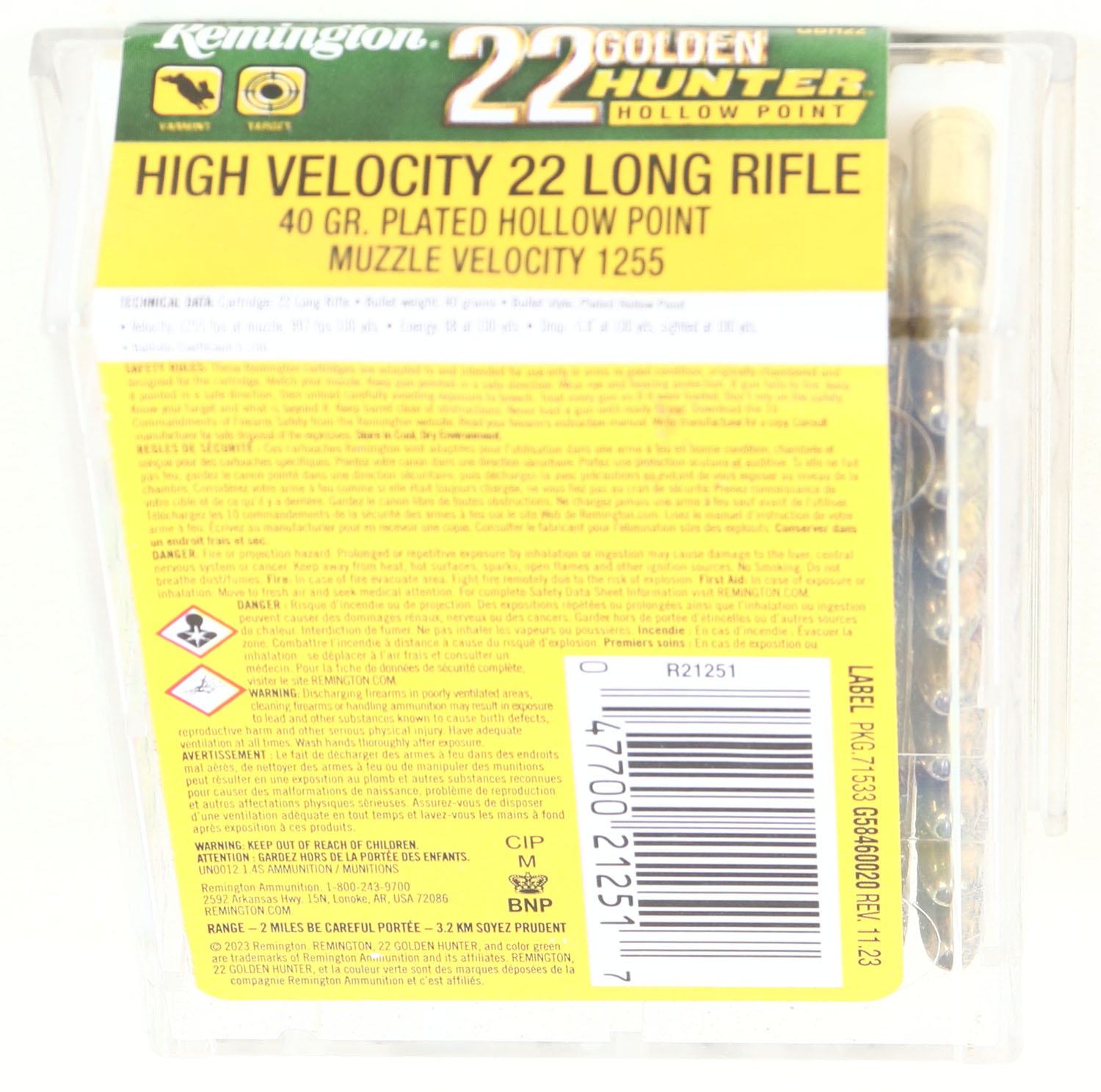 | Remington, Golden Hunter, .22 Long Rifle Hollow Point, 40 Grain ...