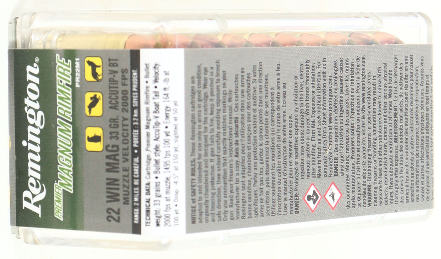 | Remington, Premier Magnum Rimfire, .22 Win. Mag., 33 Gr. Accutip...