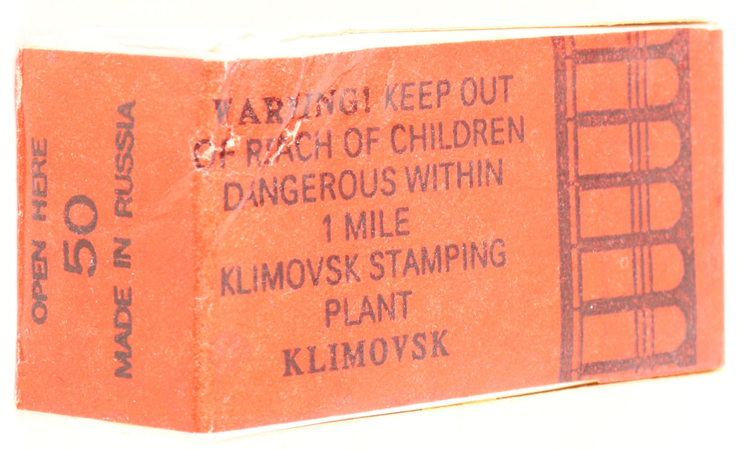 Klimovsk, Temp, .22 Long Rifle, RHWeb: (USSR) KSP-2 LR-2, FULL & SEALED, 1pc. White box with red wraparound label, box is solid with excellent color, minor shelf wear, corner ding on bottom right corner, corners otherwise mostly sharp, edges are crisp, label is intact. Grade: Excellent - Value: 20 to 60