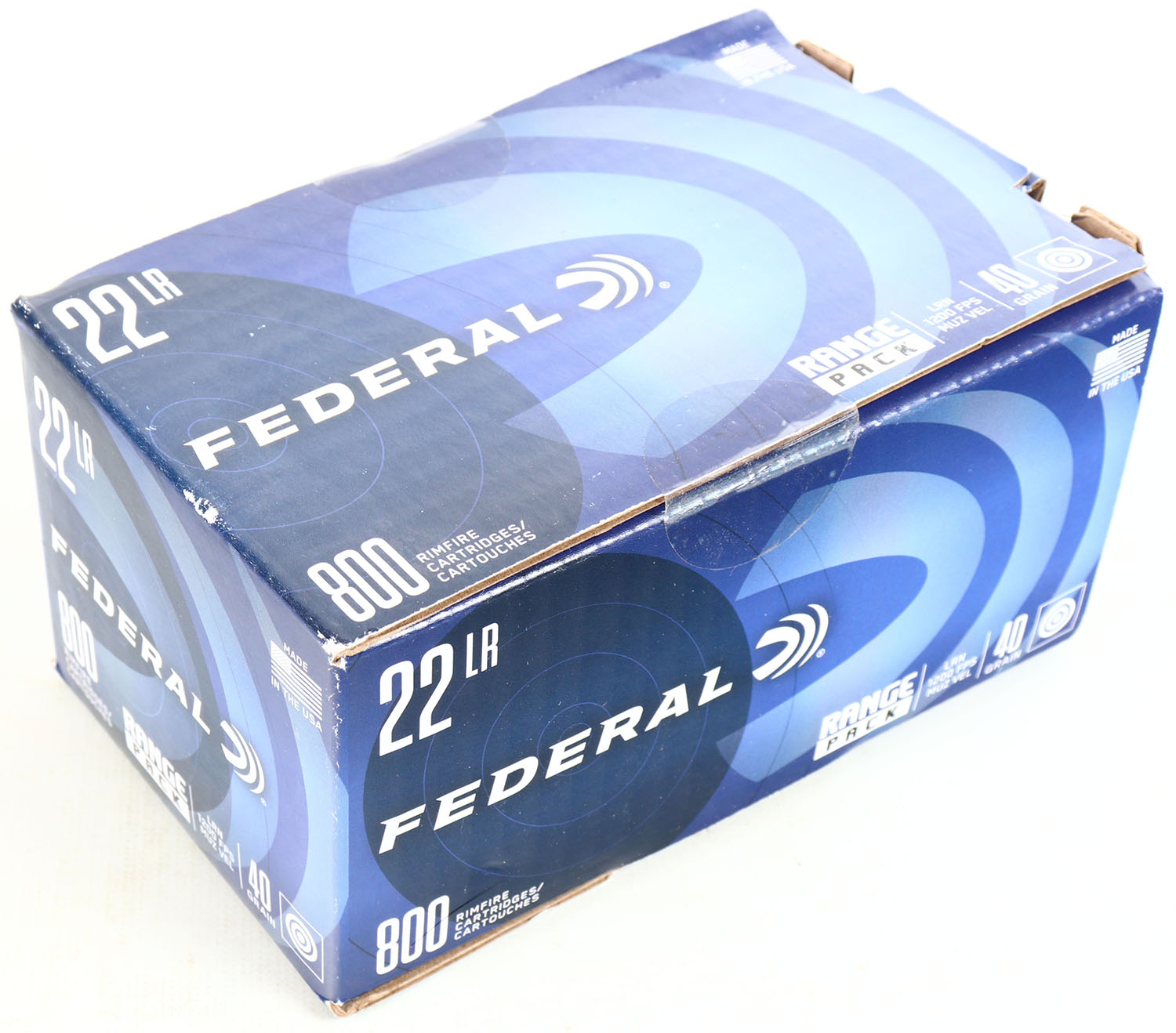 Federal, Range Pack, .22 Long Rifle, 40 Grain Lead Round Nose, 1200 FPS, FULL & SEALED, 800 rds., 1pc. Blue bulk box, box is solid with minty color, minor shelf wear, corners are sharp, edges are crisp. Grade: Excellent + - Value: 20 to 60