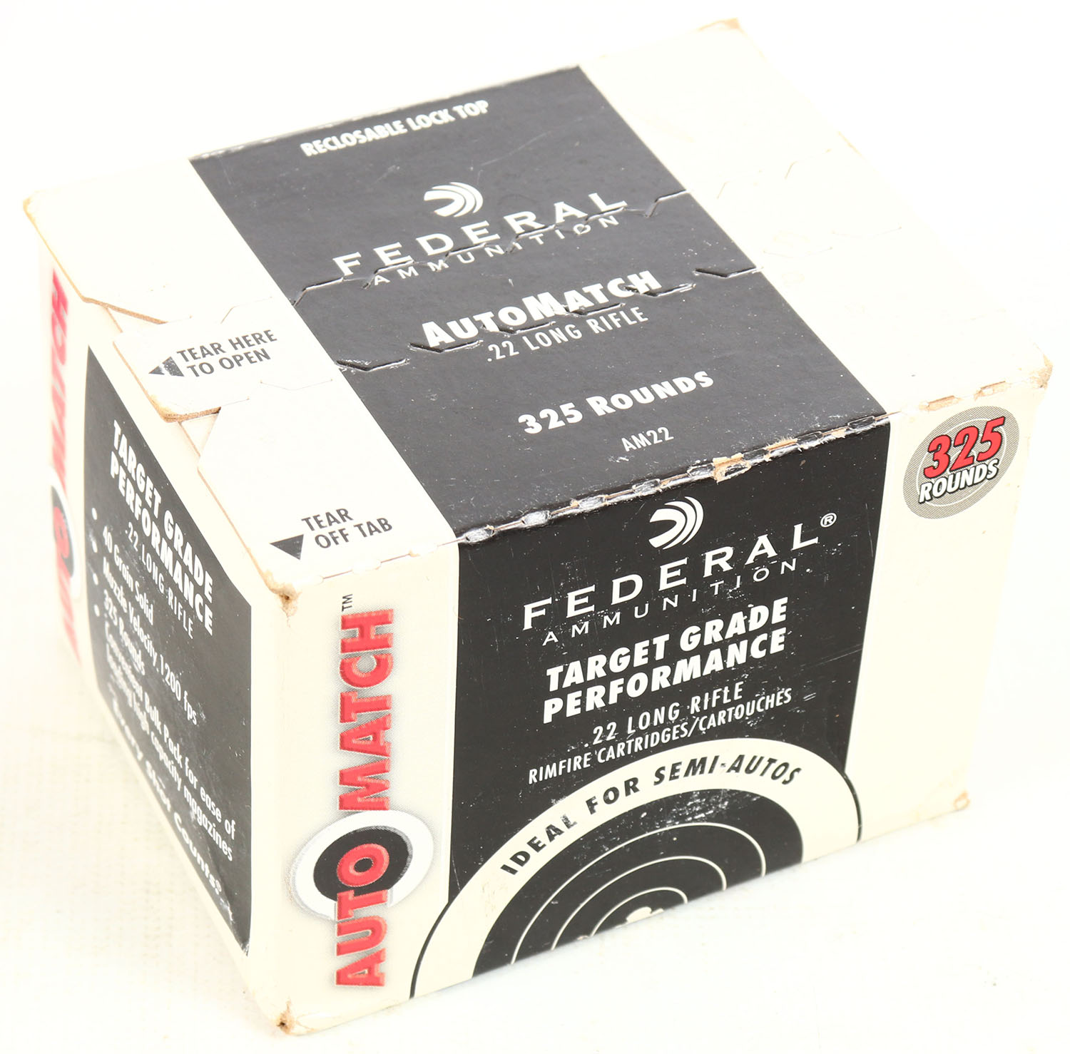 Federal, Auto Match, .22 Long Rifle, 40 Gr. Solid, 1200 FPS, FULL & SEALED, 325rds., 1pc. Black white & red bulk box, box is solid with excellent to minty color, only very minor age soiling & corner wear, edges are crisp. Grade: Excellent ++ - Value: 10 to 50