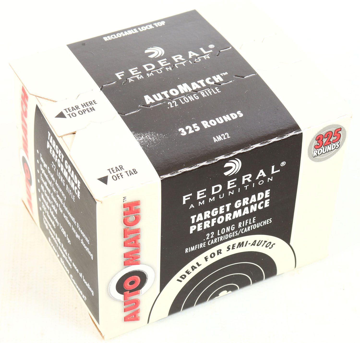 Federal, AutoMatch, .22 Long Rifle, Ideal for Semi-Autos, 40 Grain Solid, 1200 FPS, FULL & SEALED 325 rds. 1pc. Tan & black bulk box, box is MINT with minty color, corners are sharp, edges are crisp. Grade: MINT - Value: 10 to 50