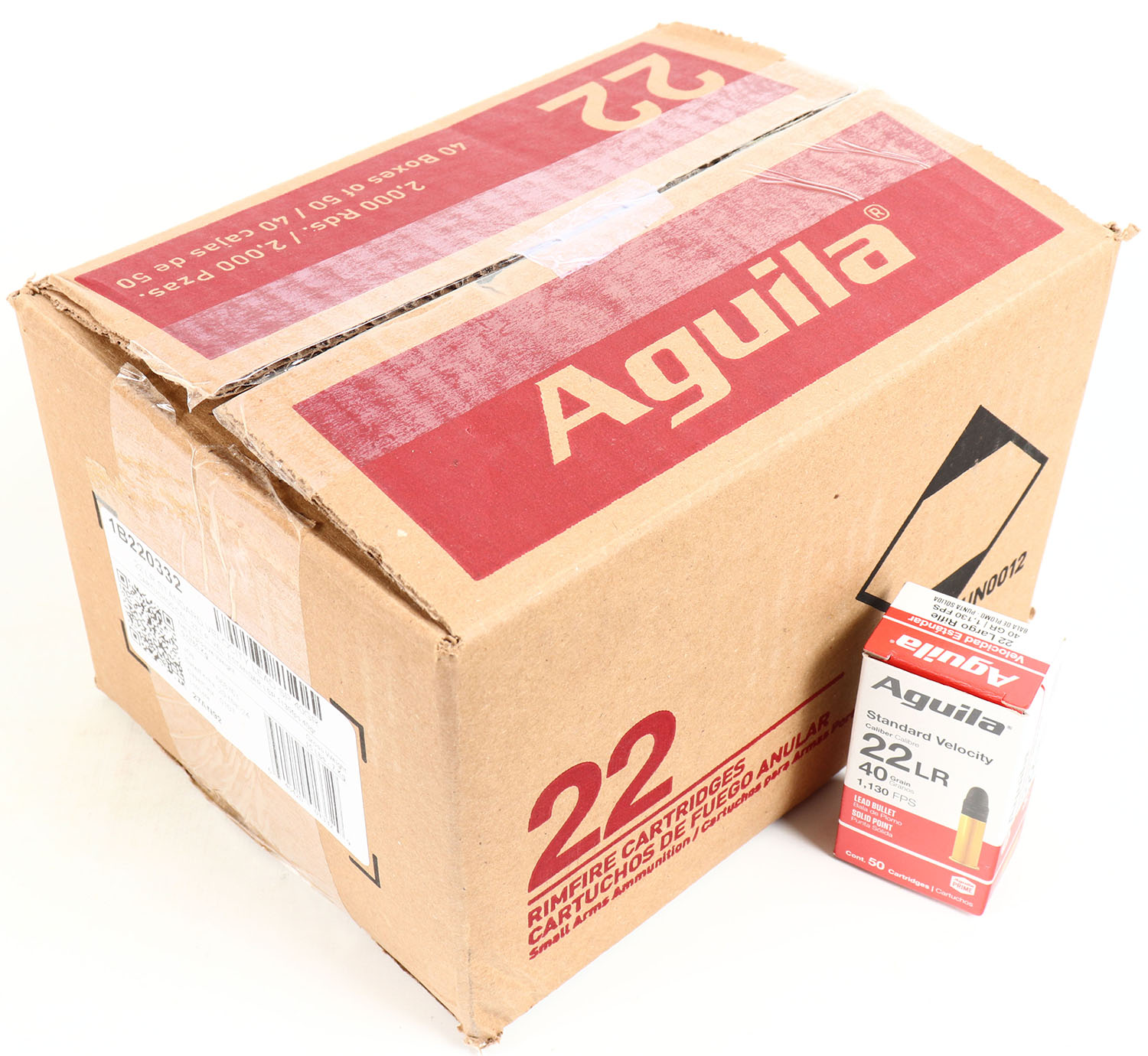 Aguila, Standard Velocity, .22 Long Rifle, 40 Grain Solid Point, 1130 FPS, Full Case, 2,000rds., case is solid, inside boxes are mint. Grade: MINT - Value: 120 to 240
