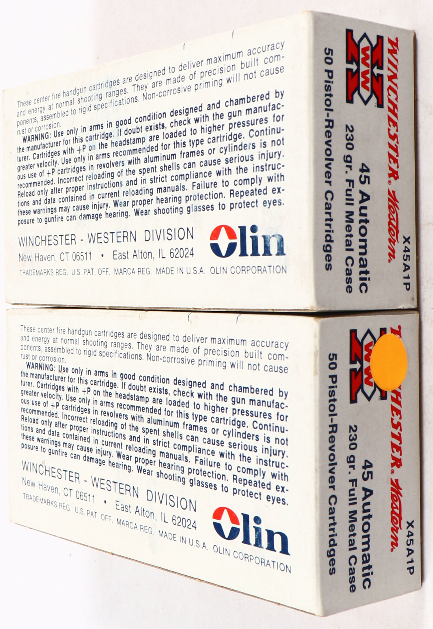 | Winchester-Western, Lot of (2), X, .45 Automatic, 230 Grain Full...