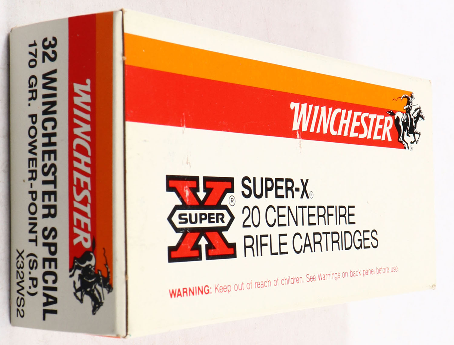 Winchester, Super-X, .32 Winchester Special, 170 Grain Power-Point, Full, 1pc. White red & orange box, box is near mint with minty color, edges are crisp, end flaps are solid, ammo is excellent. Grade: Excellent ++ - Value: 30 to 90