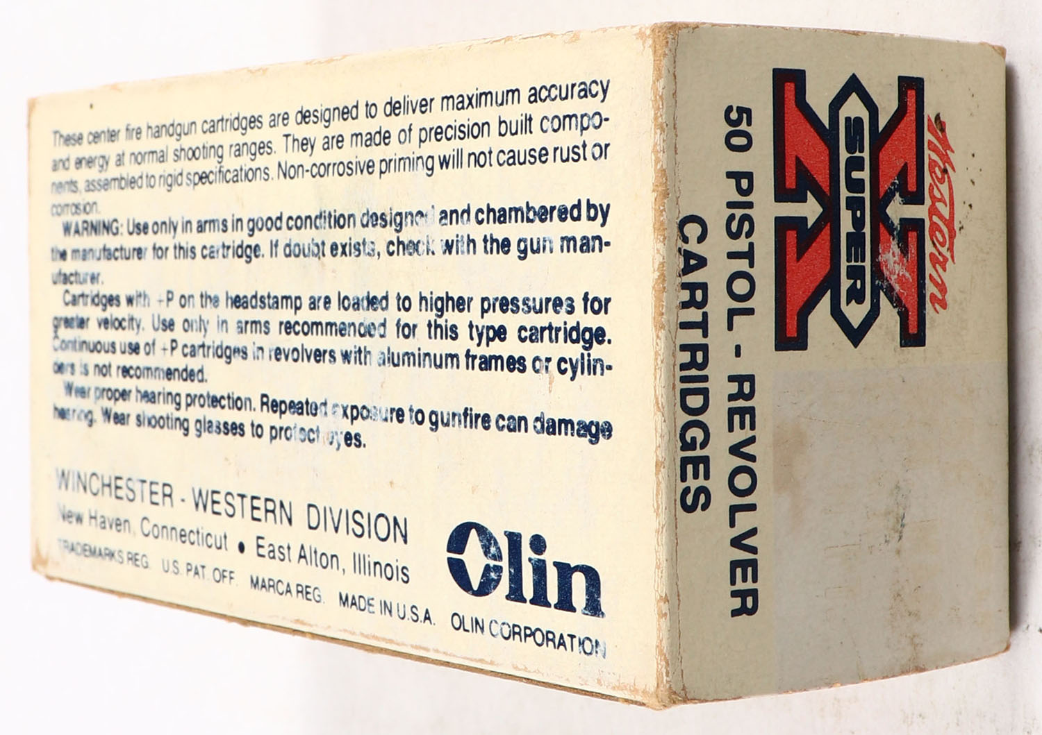 Western, Super-X, .256 Winchester Magnum, 180 Grain Power-Point, Full, 1pc. White red & black box, box is solid with very good color, minor age soiling, some shelf wear, minor edge & corner wear, end flaps are solid, ammo is excellent. Grade: Very Good ++ - Value: 20 to 60