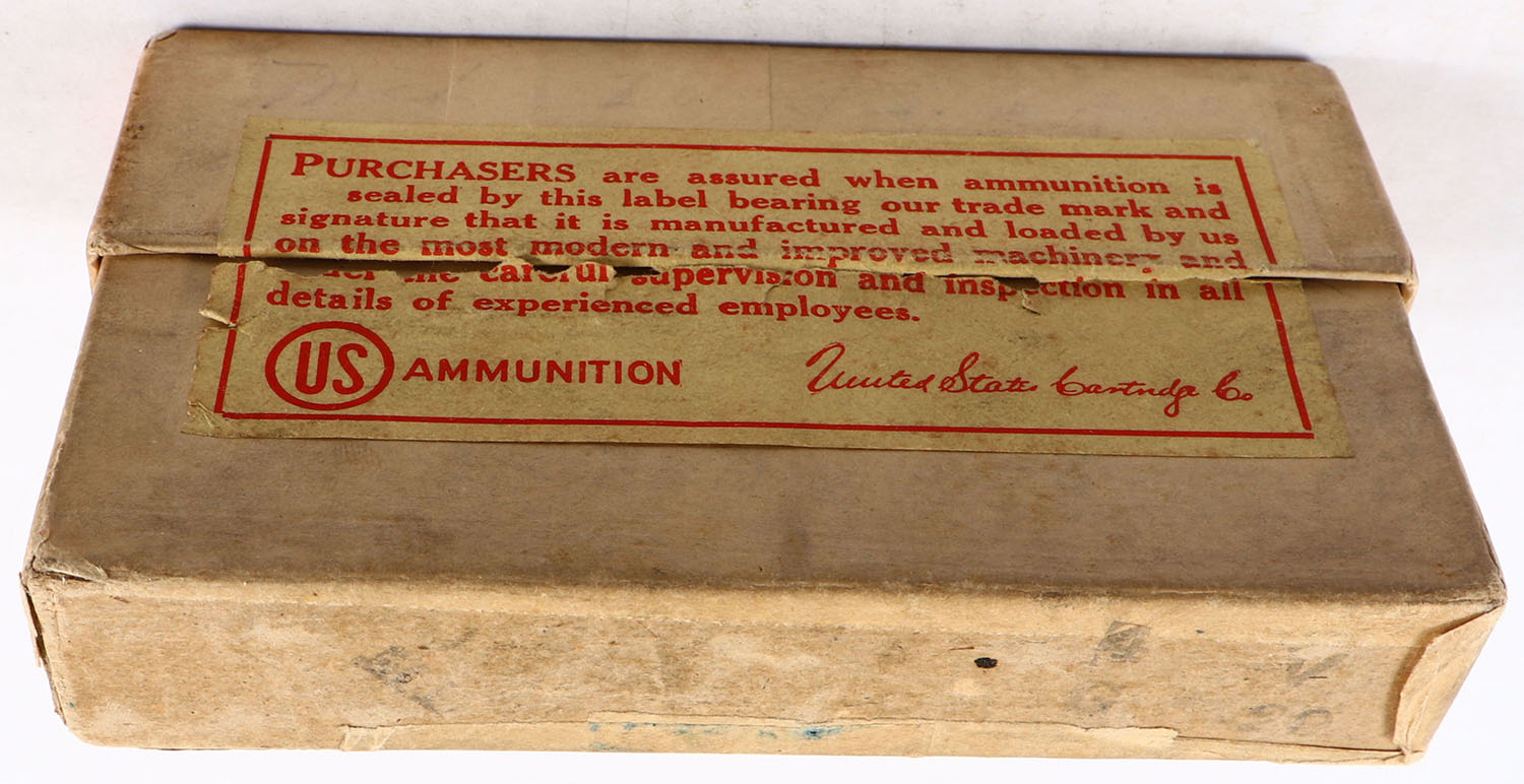 U.S., Smokeless Central Fire Cartridges, .35 Winchester, Soft Point Bullets, Full, 2pc. Buff box with orange & red label, box is solid with excellent color, minor age soiling & corner wear, edges are mostly crisp, labels are intact, ammo is excellent. Grade: Excellent - Value: 50 to 150