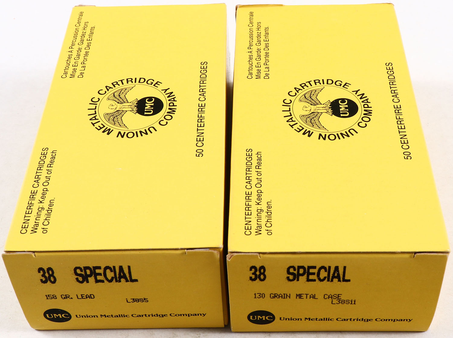 Remington, Lot of 2, .38 Special, 158 Grain Metal Case, Full, 1pc. Yellow box, box is solid with great color, end flaps are solid, ammo is excellent. Grade: Excellent - Value: 20 to 100