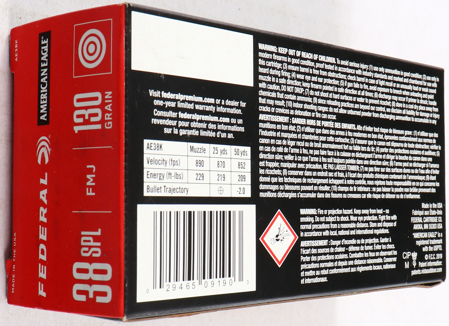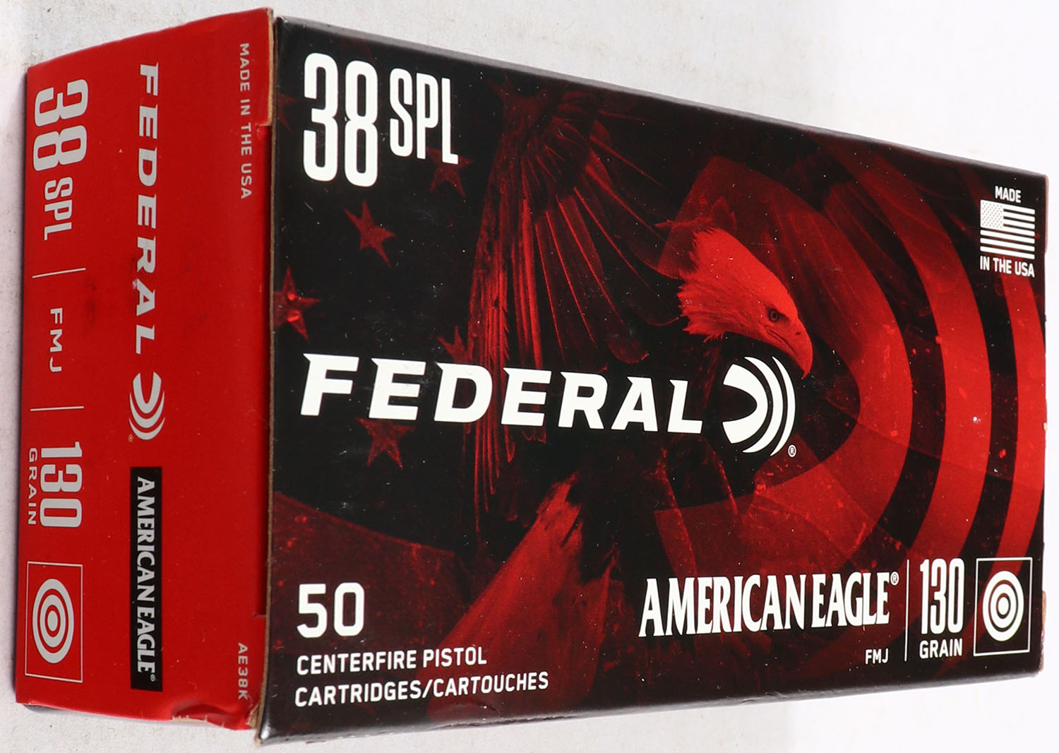 Federal, American Eagle, 38 SPL, 130 Grain FMJ, Full, 1pc., multi-colored box, box is solid with great color, end flaps are solid, ammo is excellent. Grade: Excellent ++ - Value: 10 to 40