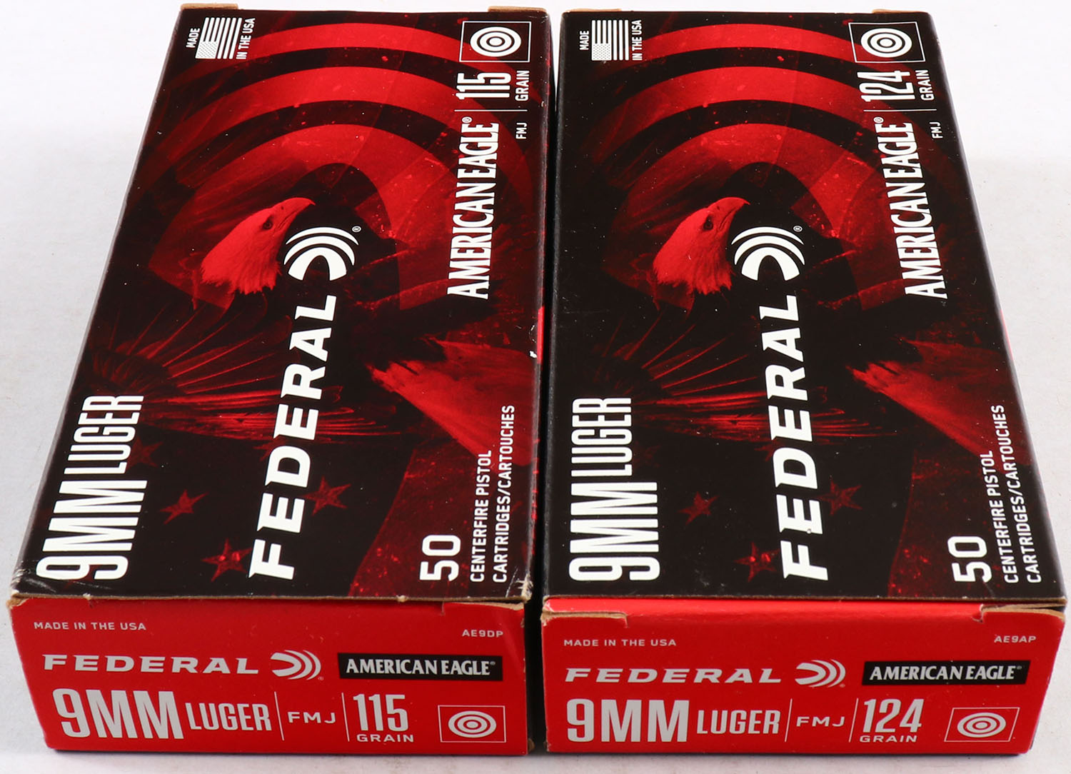 | Federal, Lot of 2, American Eagle, 9mm Luger, 115 & 124 Grain F...