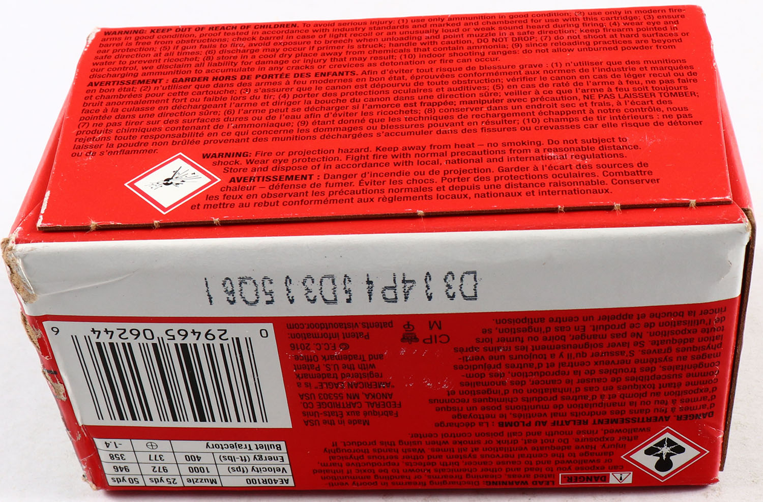 Federal, American Eagle, 40 S&W, 180 Grain FMJ, FULL & SEALED, 1pc. Multi-colored box, box is solid with great color, light edge & corner wear, end flaps are solid. Grade: Excellent - Value: 10 to 50