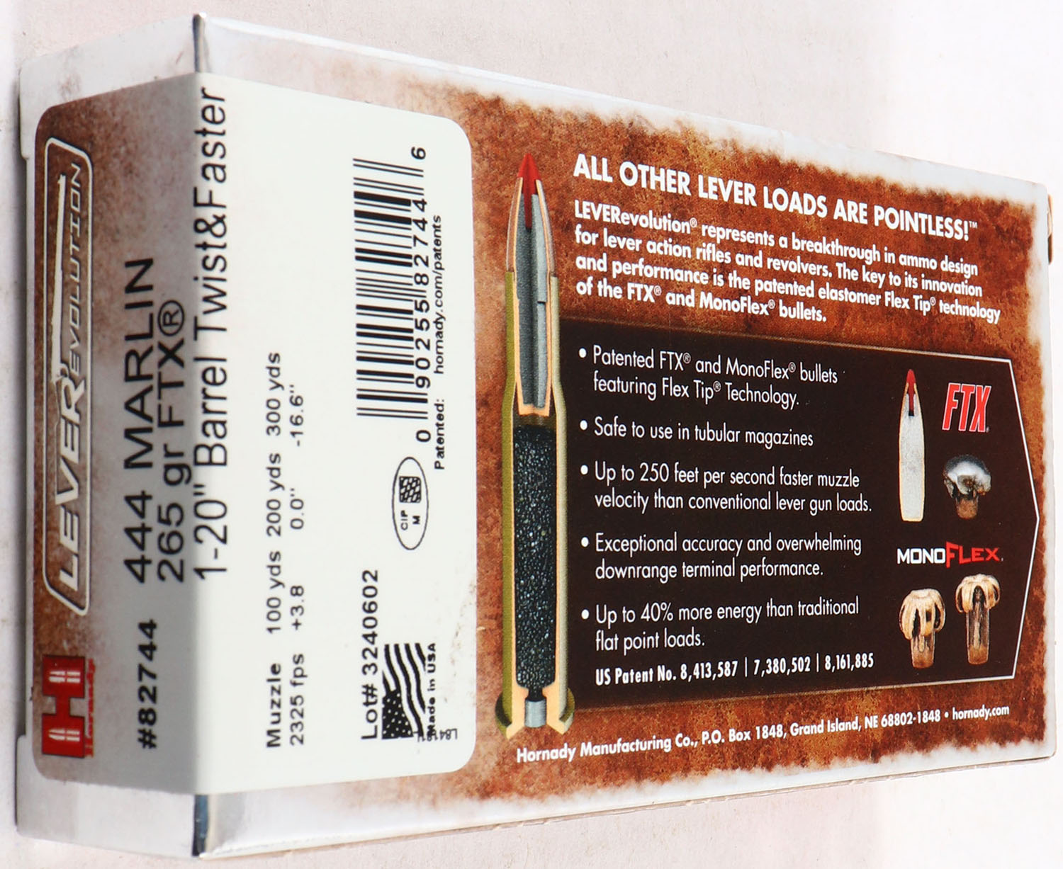 | Hornady, LeverEvolution, .444 Marlin, 265 Grain FTX, Full, 1pc. ...