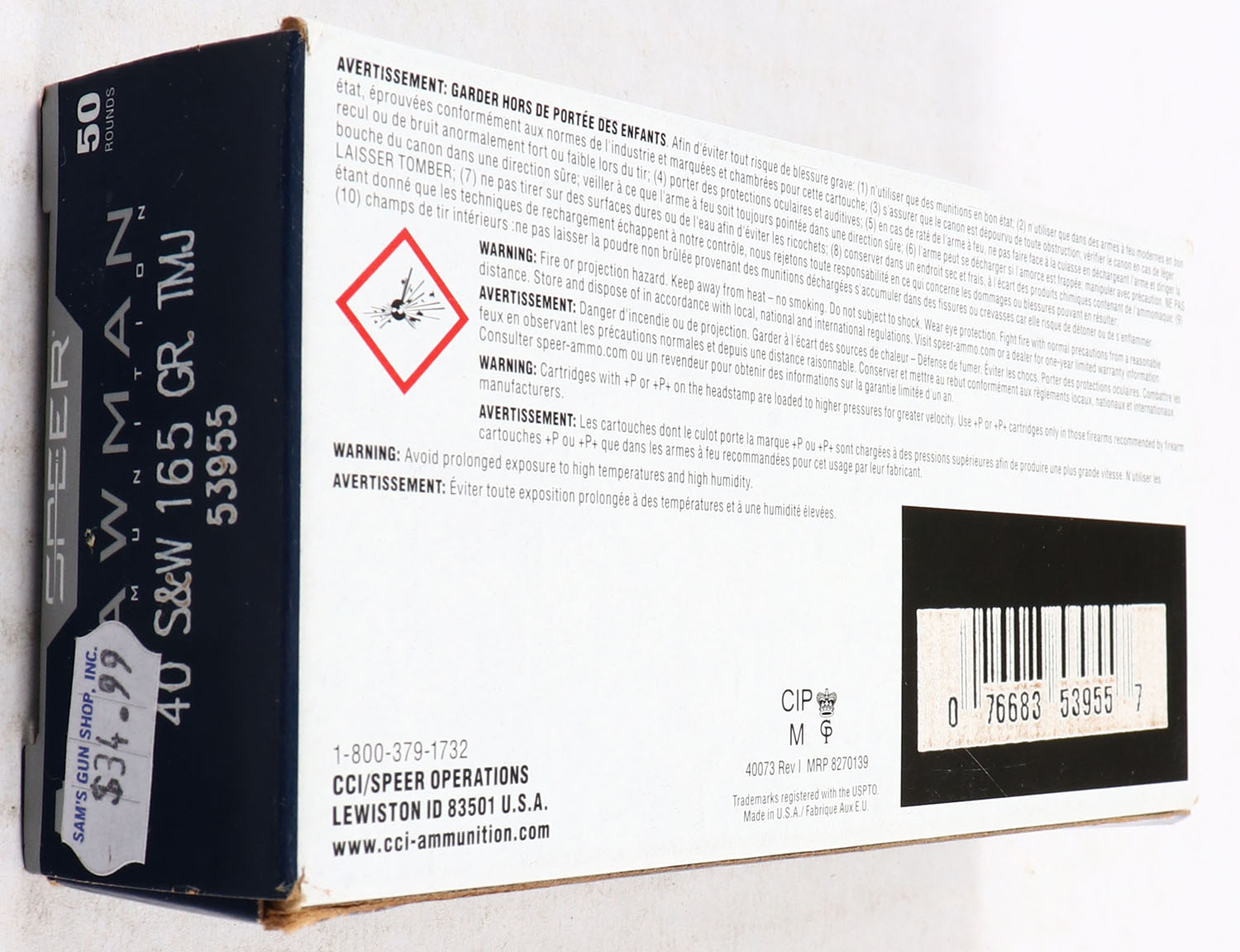 Speer, Lawman, .40 S&W, 165 Grain TMJ, Full, 1pc. multi-colored box, Ammo is excellent. Grade: Excellent ++ - Value: 16 to 40