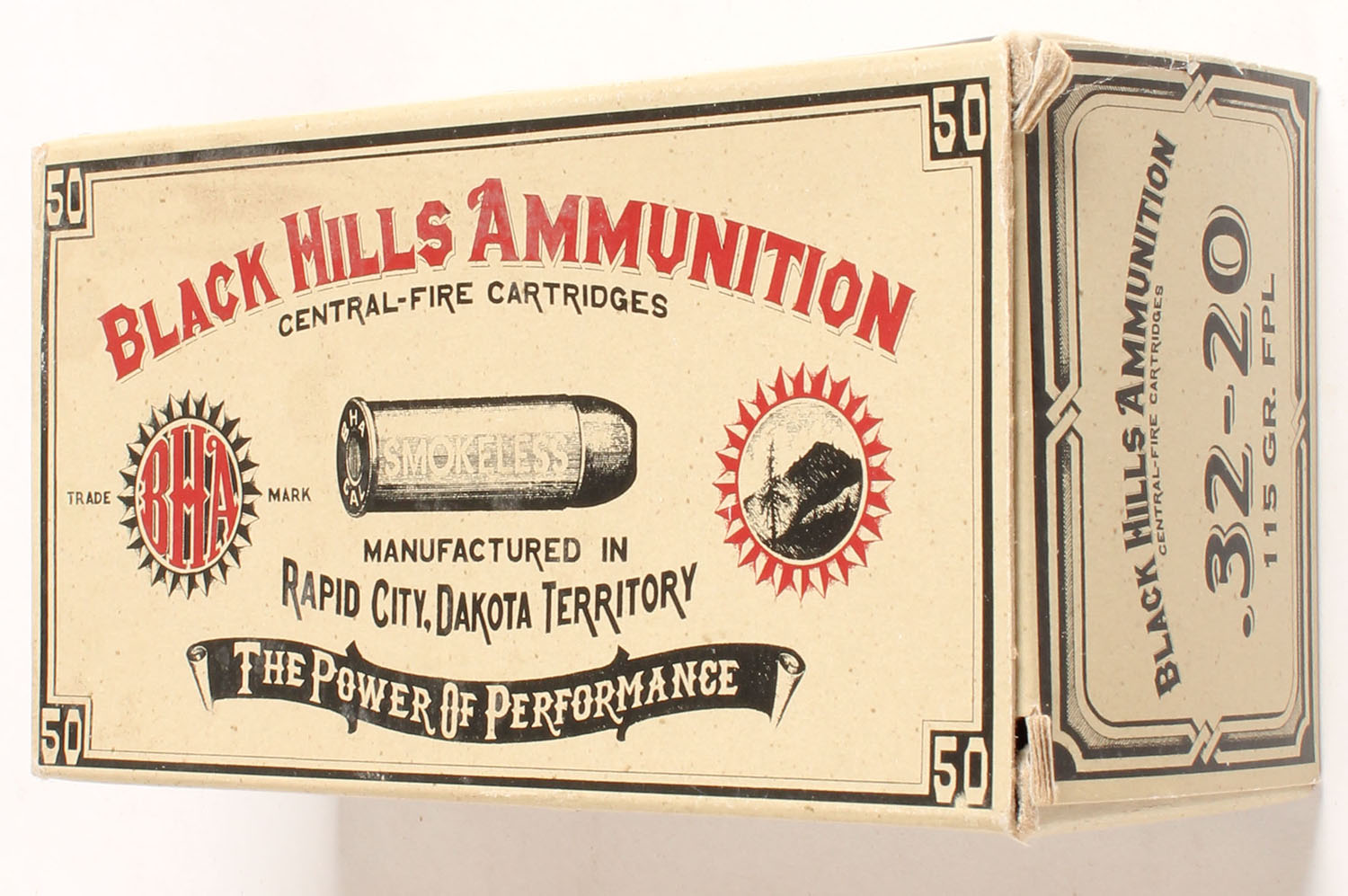 Black Hills, .32-20, 115 Grain FPL, Full, 1pc. multi-colored box, box is solid with light shelf wear, Ammo is excellent. Grade: Very Good ++ - Value: 30 to 120