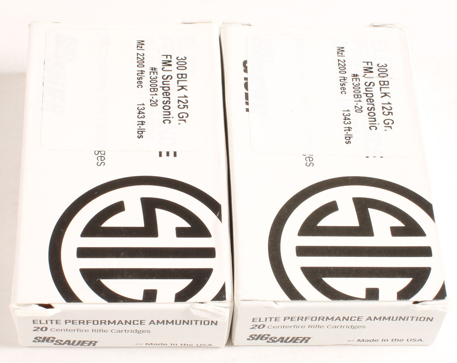 Sig Sauer, Lot of 2, Elite Performance, .300 BLK., 125 Grain FMJ Supersonic, Full, 1pc. multi-colored box, box is solid, Ammo is excellent. Grade: Excellent ++ - Value: 16 to 40