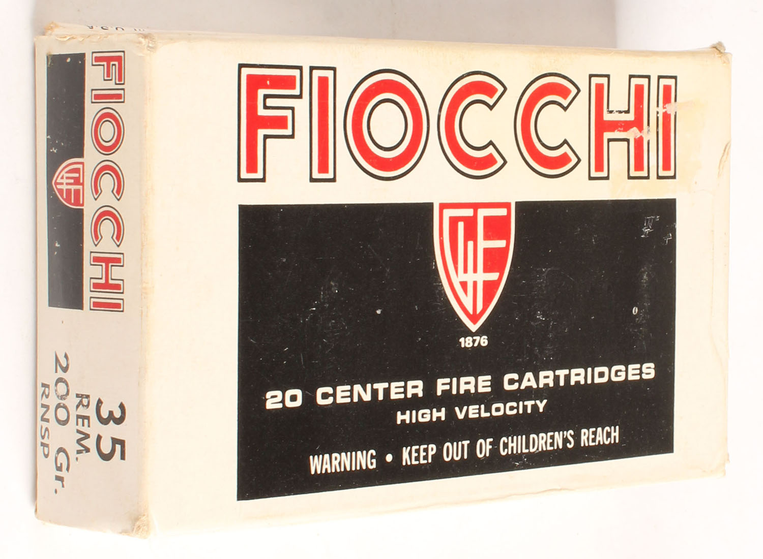 Fiocchi, .35 Rem., 200 Gr. RNSP, Full, 1pc. Multi-colored box, box has shelf wear, has excellent color, Ammo is very good. Grade: Very Good ++ - Value: 20 to 60