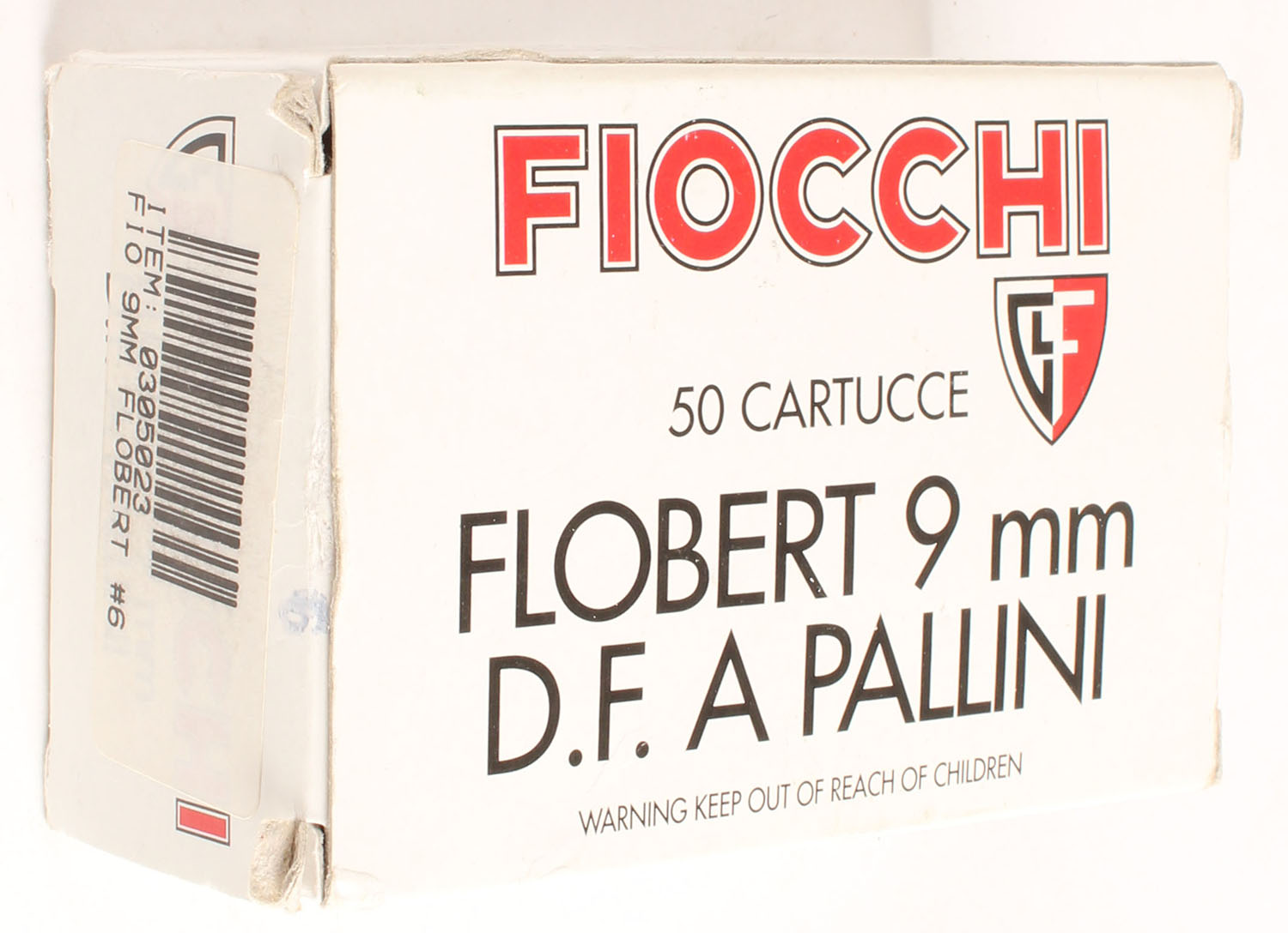 Fiocchi, Flobert D.F. A Pallini, 9mm, Full, 1pc. Multi-colored box, box is solid, has excellent color, Ammo is excellent. Grade: Excellent - Value: 20 to 60