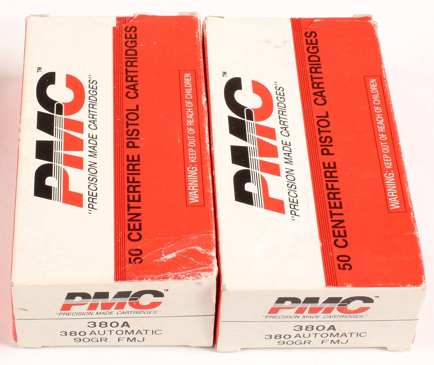 PMC, Lot of 2, .380 auto, 90 Gr., 1pc, Partial 97rds, box is solid, ammo is excellent. Grade: Excellent - Value: 20 to 60