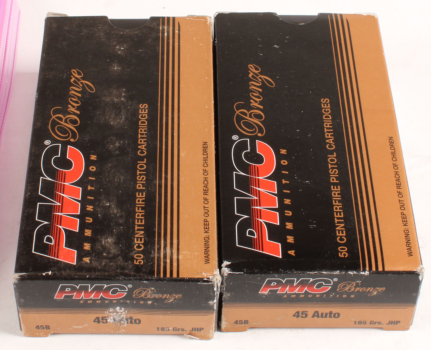PMC Bronze, Lot of 2, .45 auto, 185 Gr., 1pc, Full, box is solid, ammo is excellent. Grade: Excellent + - Value: 20 to 60