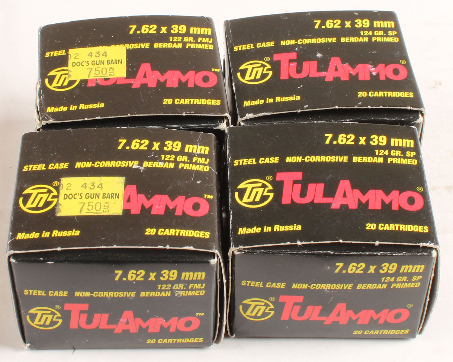 | Tul-Ammo, Lot of (4), 7.62x39 mm, 124 Grain SP, Steel Case, Full...