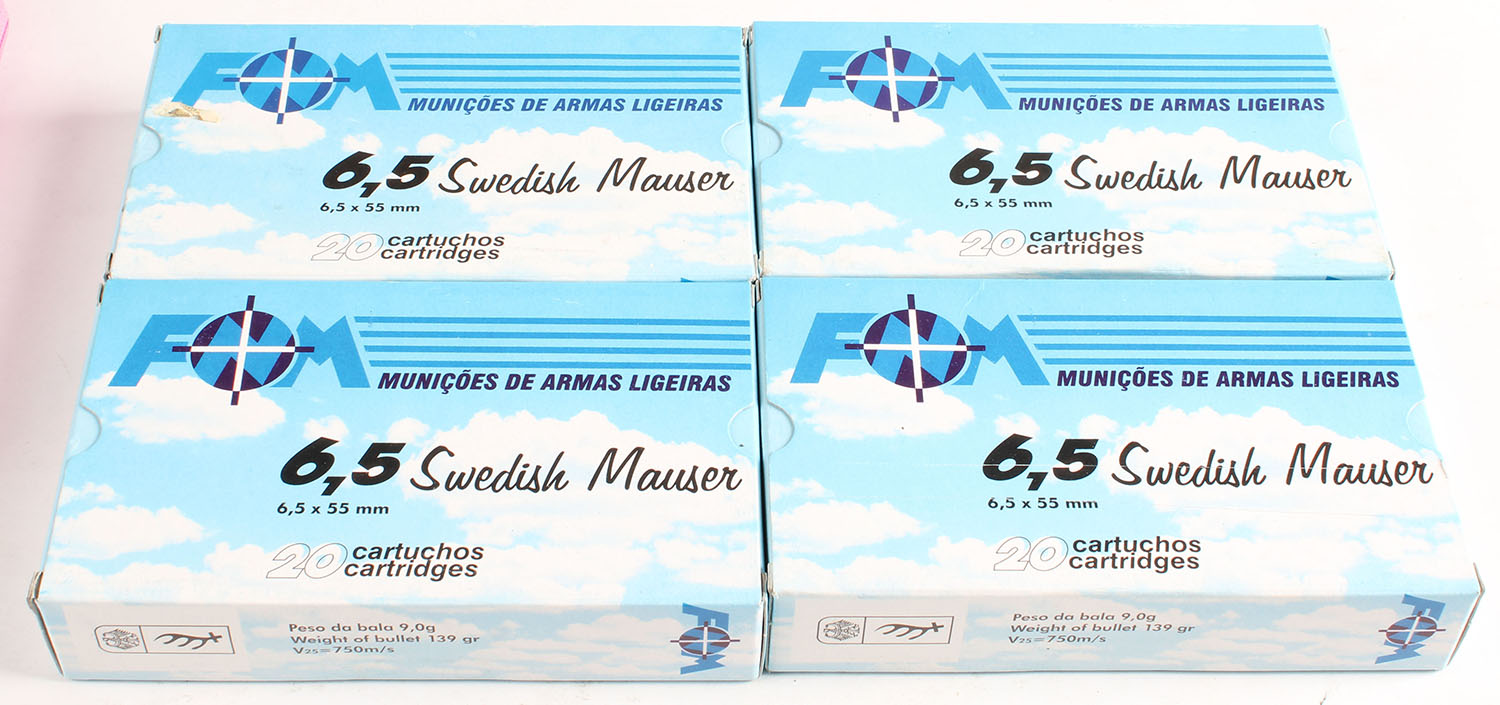 | Municoes de Armas Ligeras, Lot of (4) 6.5 Swedish Mauser, 139 Gr...