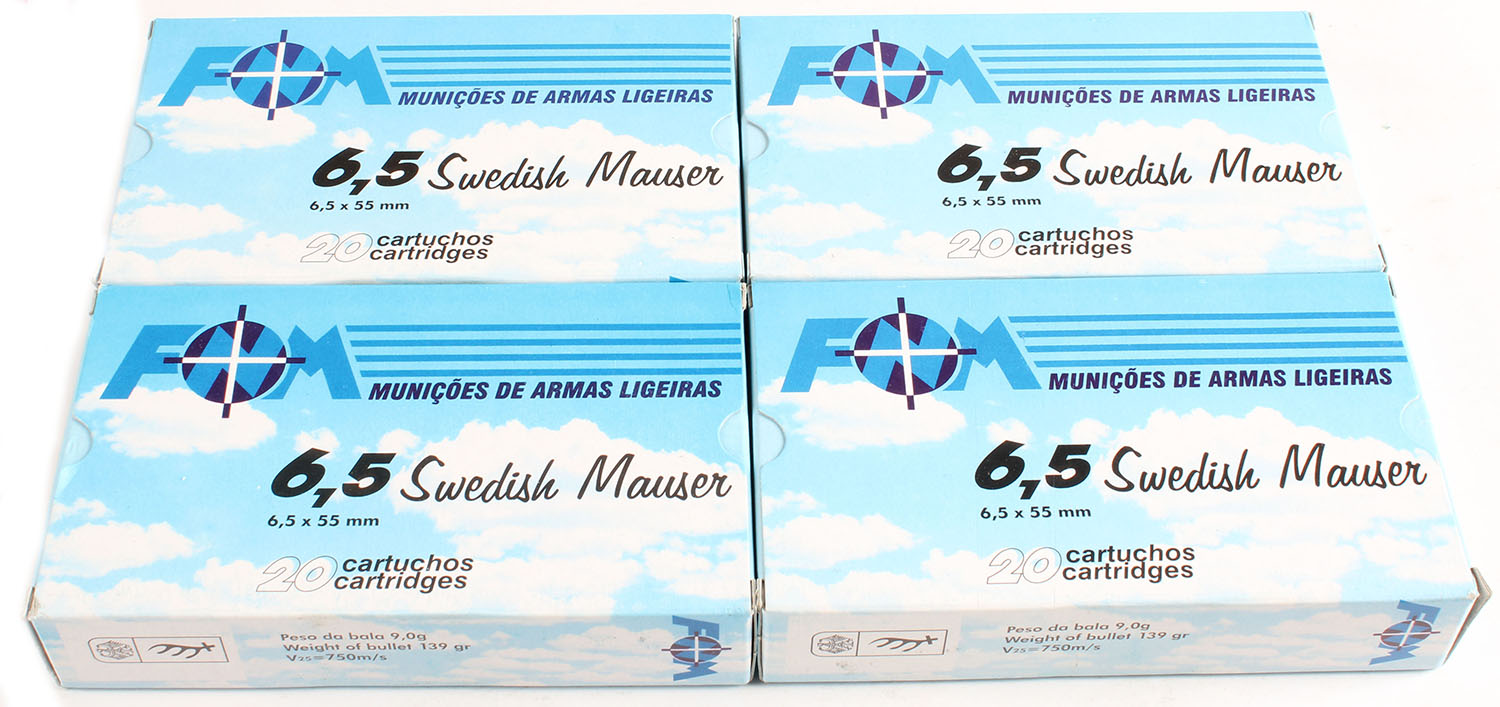 | Municoes de Armas Ligeras, Lot of (4) 6.5 Swedish Mauser, 139 Gr...