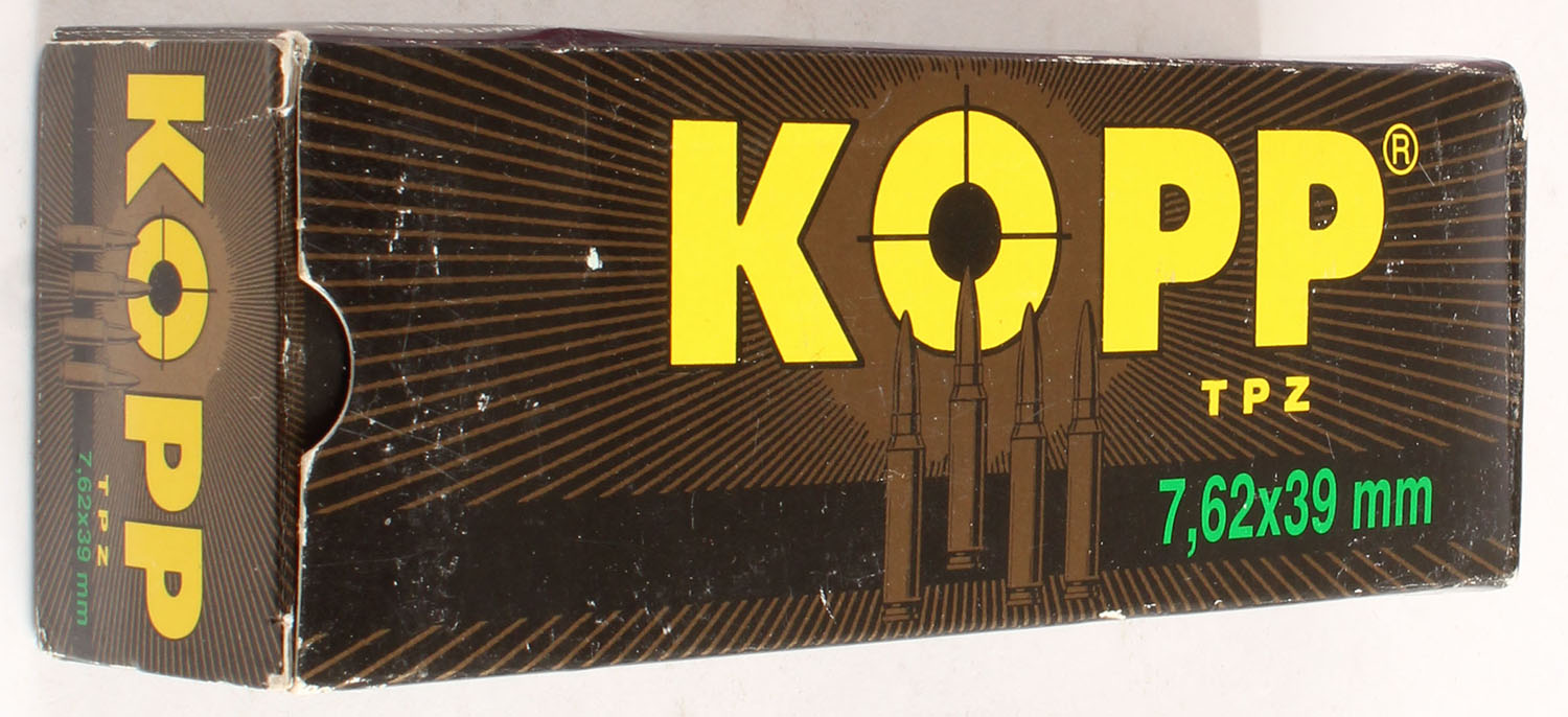 | C.I.P., Kopp, 7.62 x 39mm, 124 Grain, Full, 1pc. Brown box, box ...