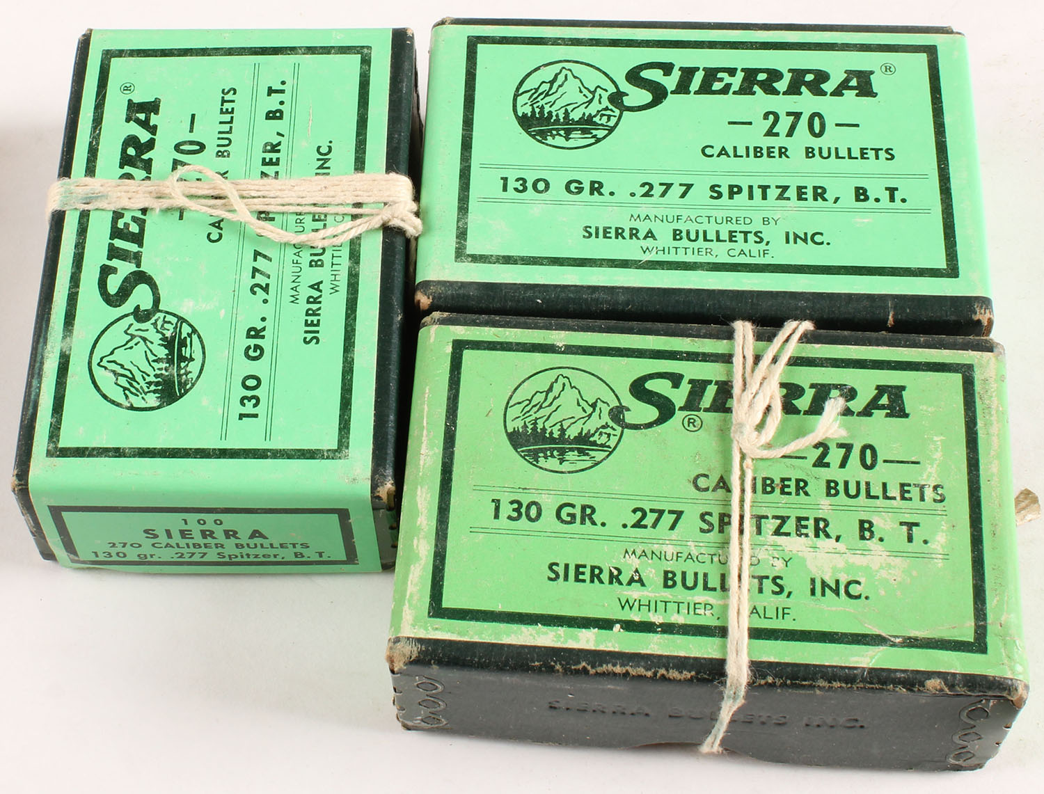 Sierra Bullets, Lot of 3, 270 Cal, .277'' Spitzer, 130 Gr., 2pc, (2) boxes Full & Sealed other is Full. Grade: Excellent + - Value: 20 to 80